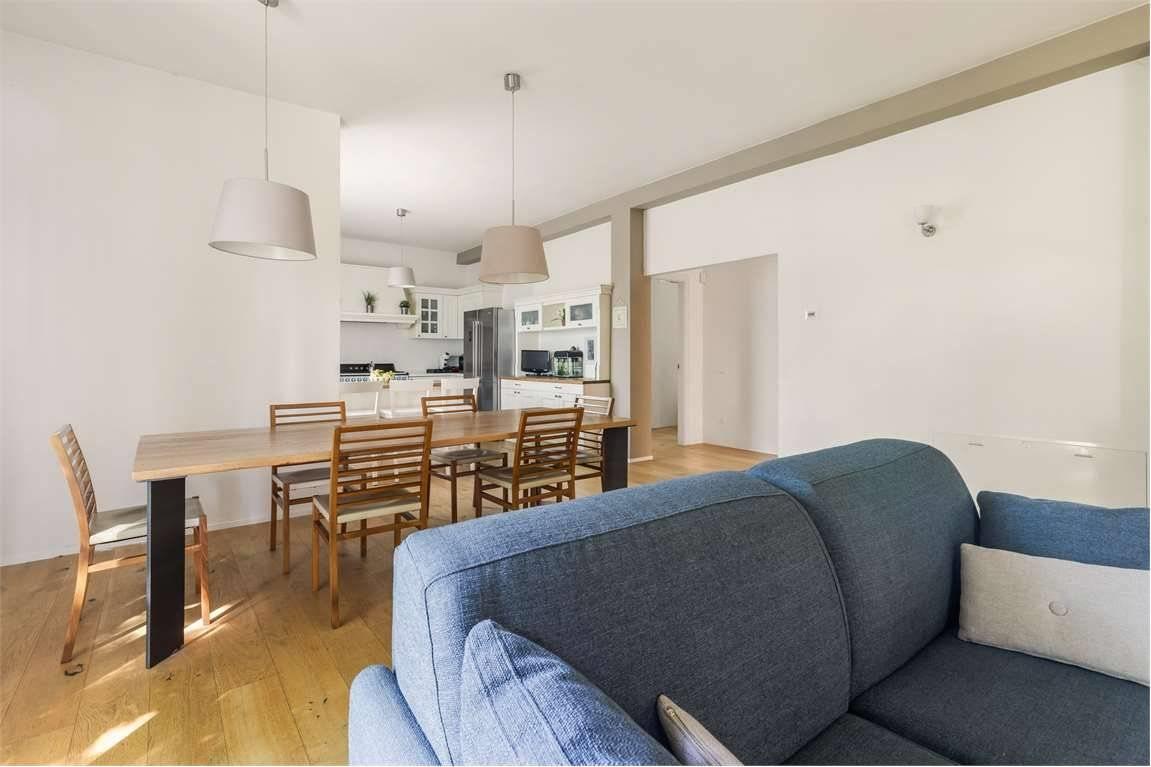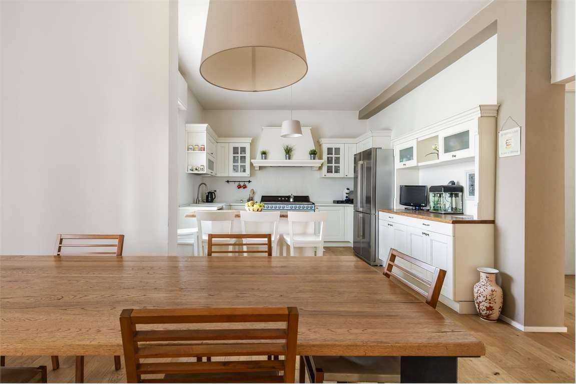 La zona giorno è composta da un ampio e luminoso soggiorno con cucina attualmente a vista (ma che si potrebbe rendere abitabile);