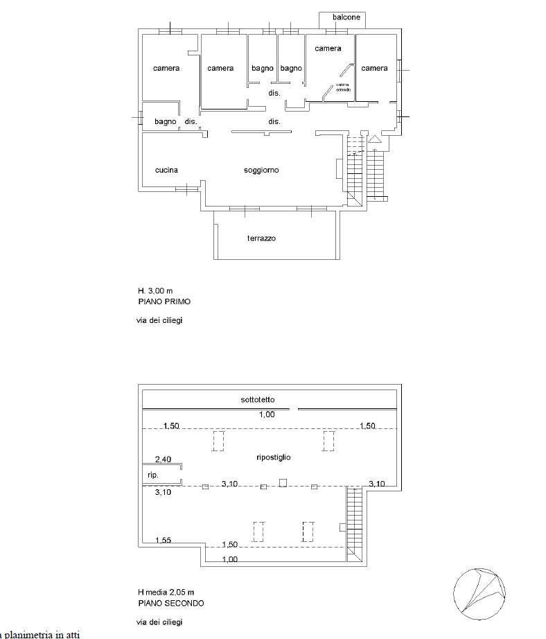 si sviluppa su un unico piano (per circa 190 mq), oltre al sottotetto (ad uso ripostiglio ma con eventuale possibilità recupero, previa modifiche e riscontro urbanistico) di pari metratura, con cantina al piano terra, box di 48 mq e GIARDINO di oltre 2300 mq!