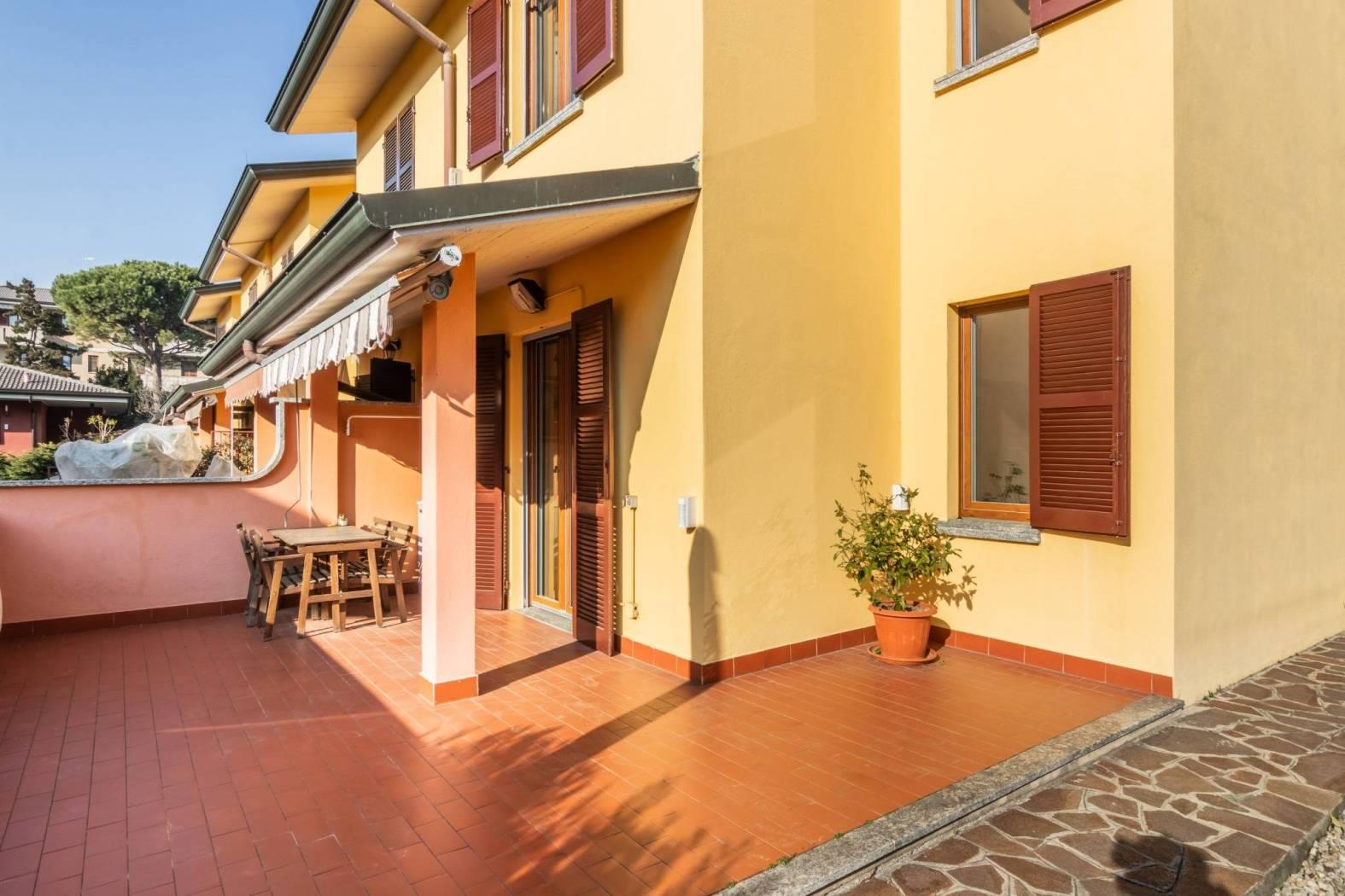 in posizione strategica, comoda con tutti i principali servizi, proponiamo villa di testa libera su tre lati, con ingresso indipendente, recentemente ristrutturata, inserita in piccolo contesto di sole 10 villette, con bassissime spese condominiali. la villa è disposta su due livelli abitativi oltre taverna: piano terra: ingresso indipendente, luminoso soggiorno, cucina abitabile con accesso a ampio terrazzo, bagno di servizio con box doccia. piano superiore: caratterizzato dalla pavimentazione in parquet. 3 camere, di cui una adibita a cabina armadio, balcone e bagno.