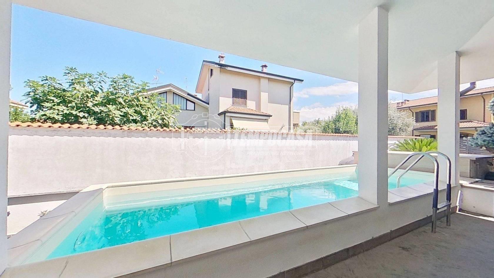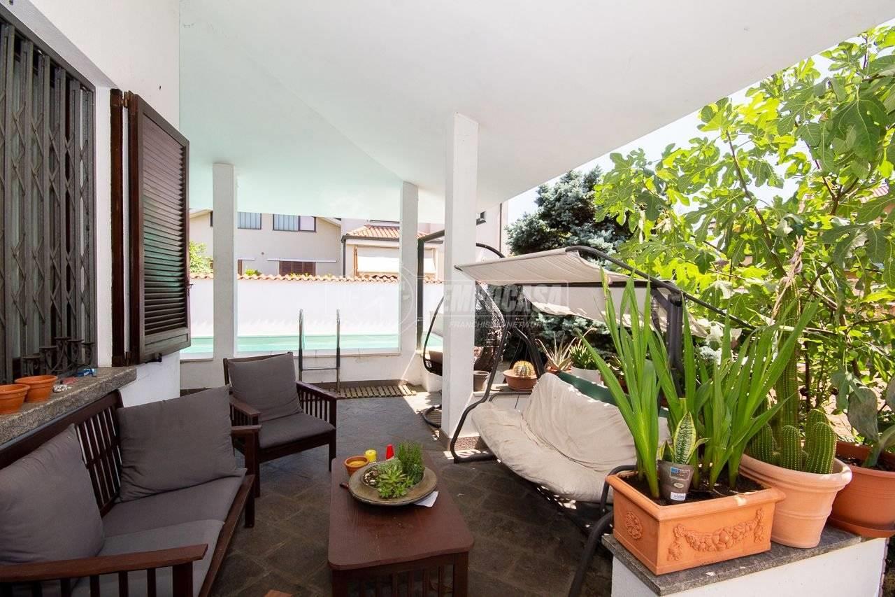 Rif: 01062 - Alle porte di Monza, in una zona residenziale elegante e tranquilla, comoda per i collegamenti con tangenziali e autostrade, si trova questa splendida villa con piscina, un’oasi di comfort e riservatezza a pochi minuti dal centro città. Appena si varca il cancello elettrico, della proprietà, si viene immediatamente accolti da uno splendido giardino privato, curato con grande attenzione, che regala una prima impressione di armonia e benessere. Il vialetto attraversa il verde e conduce verso la piscina scoperta, fulcro dell’area esterna, affiancata da una zona solarium perfetta per il relax nelle giornate estive. Proseguendo, si raggiunge il retro della villa, dove una spaziosa zona piastrellata, collegata direttamente alla cucina, si rivela ideale per pranzi all’aperto e barbecue in compagnia. All’interno, la villa accoglie con un elegante ingresso che si apre su un ampio soggiorno con camino, dove la luce naturale valorizza ogni angolo, creando un ambiente raffinato e accogliente. Accanto si trova la cucina abitabile, spaziosa e funzionale, perfetta per chi ama vivere la convivialità anche nei momenti quotidiani. Completa il piano terra un bagno di servizio, comodo e ben rifinito. Salendo al primo piano, la zona notte ospita due camere da letto singole, un bagno finestrato con box doccia e una camera matrimoniale ampia e luminosa, dotata di cabina armadio e bagno privato con vasca e doccia, pensato per offrire comfort e privacy. Il piano seminterrato, ampio e versatile, ospita una grande taverna con accesso diretto al box, una lavanderia, un ripostiglio e il locale caldaia, rendendo ogni spazio della casa funzionale e ben organizzato. L’abitazione è dotata di finiture e impianti di alto livello: al piano terra i pavimenti sono in gres porcellanato, resistenti e moderni, mentre al primo piano si cammina su un raffinato parquet in ulivo che dona calore agli ambienti. La sicurezza è garantita da inferiate al piano terra, zanzariere al primo piano, porta blindata e videocitofono. Il cancello d’ingresso è elettrico. Il riscaldamento a pavimento al piano terra assicura un clima sempre confortevole, grazie anche all'impianto di aria condizionata con funzione caldo/freddo mentre nella taverna e al primo piano sono presenti radiatori per una distribuzione uniforme del calore. Una soluzione abitativa completa, elegante e perfettamente mantenuta, dove ogni dettaglio è pensato per offrire qualità della vita in un contesto esclusivo e ben collegato.