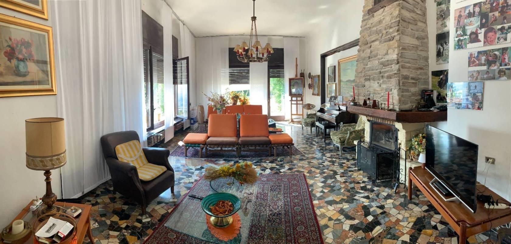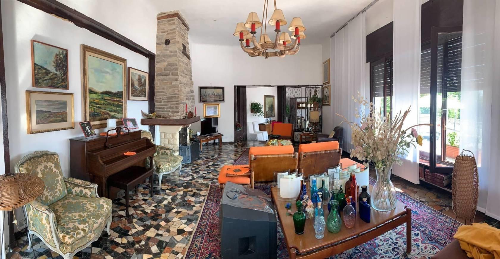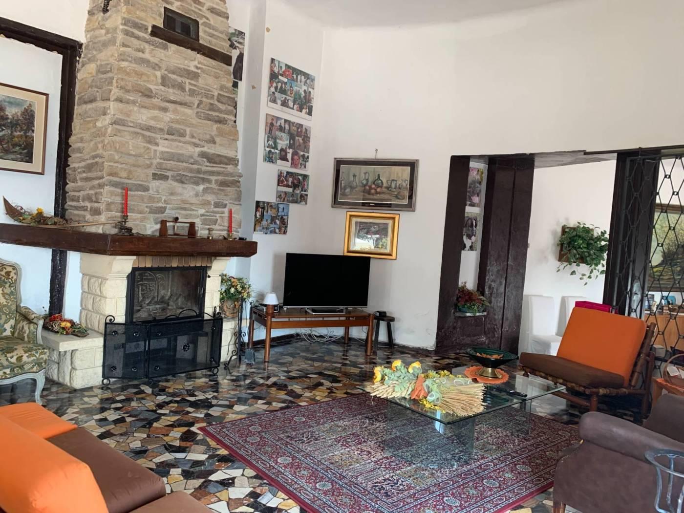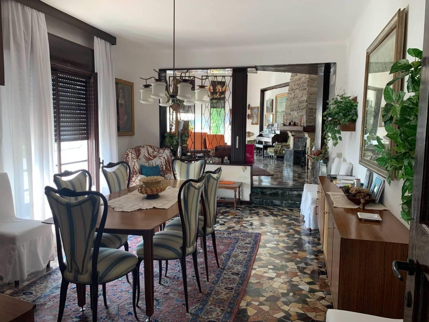 Al piano primo collegato con scala interna, sempre di mq. 265, si trovano cinque camere, quattro servizi, cucina ed ampia sala panoramica con vetrate e camino. Al piano secondo sottotetto con possibilità di recupero abitativo di mq. 155 oltre a tre camere, guardaroba e servizio igienico. In corpo staccato vi sono ambienti uso autorimessa ed uso portineria, da poter ristrutturare ed adibire ad abitazione o pertinenza. Massima privacy ed esposizione sui 4 lati. € 1.150.000,00