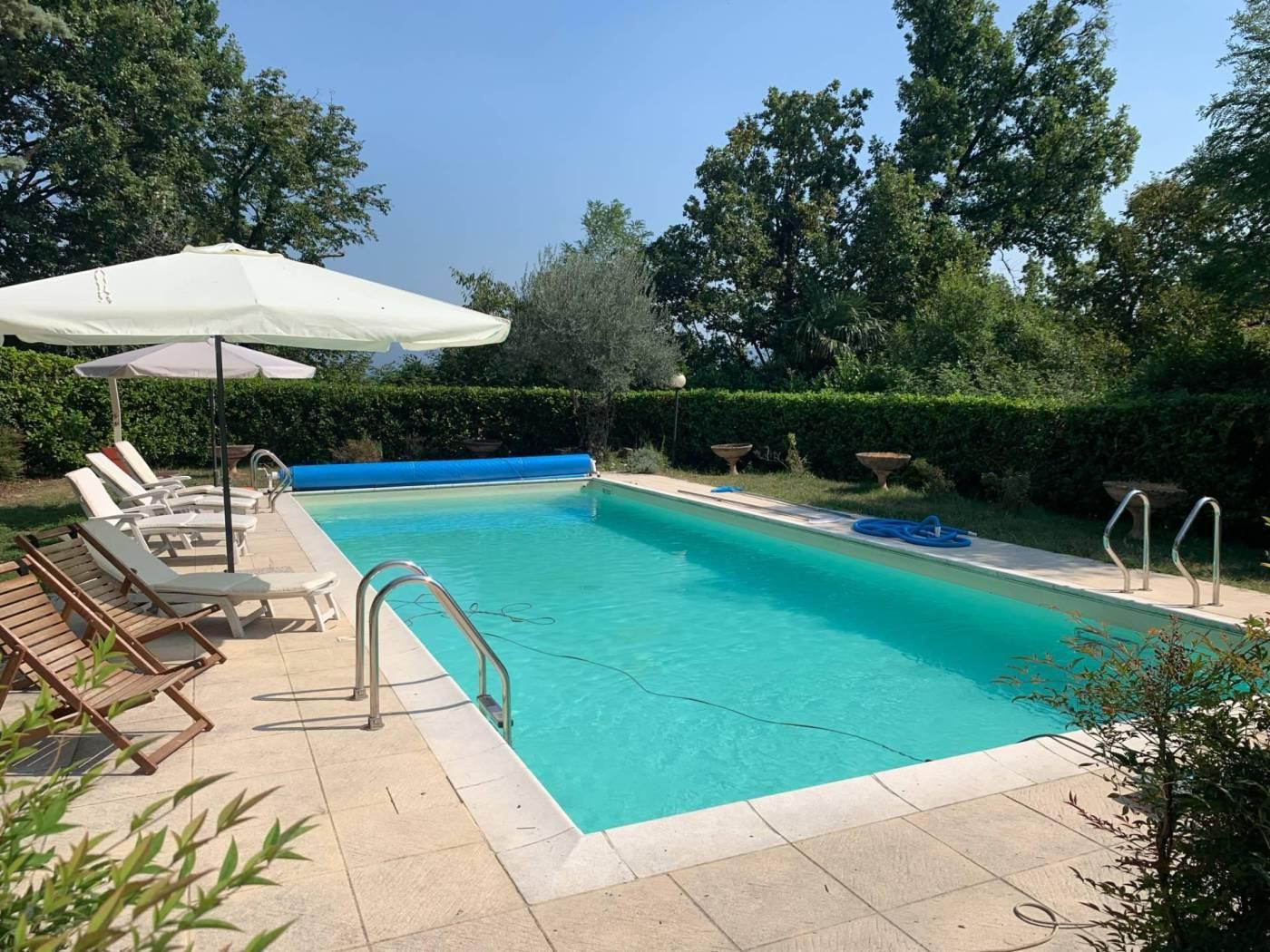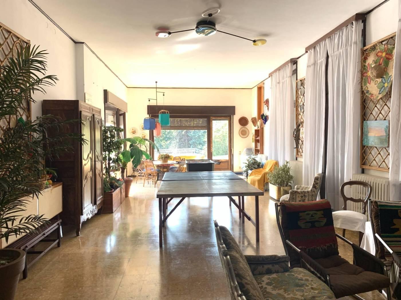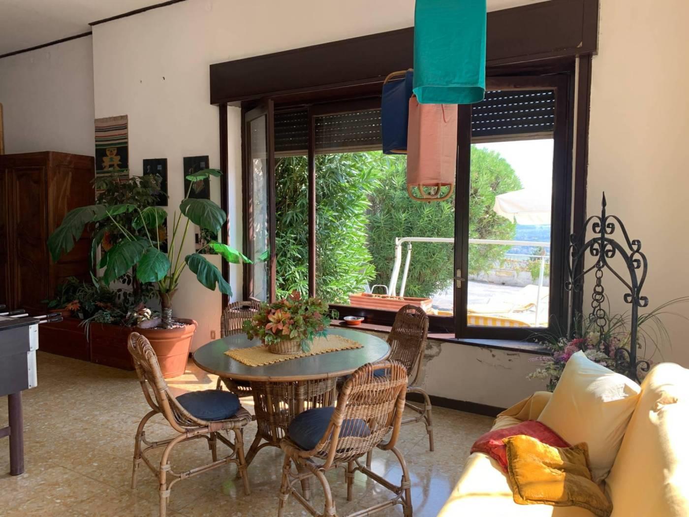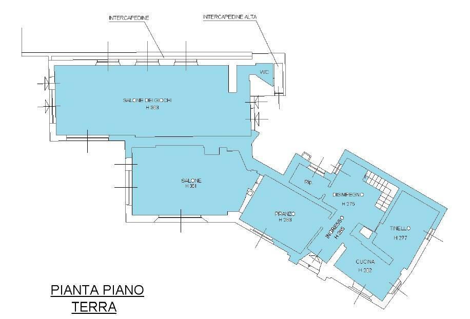 Al piano primo collegato con scala interna, sempre di mq. 265, si trovano cinque camere, quattro servizi, cucina ed ampia sala panoramica con vetrate e camino. Al piano secondo sottotetto con possibilità di recupero abitativo di mq. 155 oltre a tre camere, guardaroba e servizio igienico. In corpo staccato vi sono ambienti uso autorimessa ed uso portineria, da poter ristrutturare ed adibire ad abitazione o pertinenza. Massima privacy ed esposizione sui 4 lati. € 1.150.000,00
