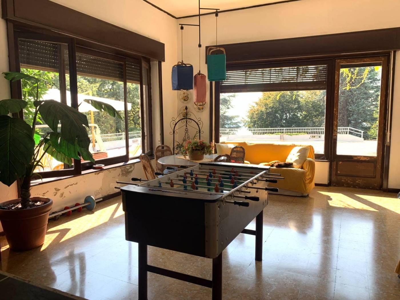 EUPILIO O06: distante 15 Km da Como e Lecco, in cornice verde e panoramica con vista dei laghi di Pusiano-Alserio e Annone, splendida esposizione, villa singola adatta anche ad essere frazionata per più nuclei familiari. Parco-terreno di pertinenza di mq. 20.000 circa, con zona piscina dotata di servizio-spogliatoio, al piano terreno di mq. 265 si sviluppa la zona a giorno composta da atrio d'ingresso, cucina, trinello, soggiorno con camino e sala da pranzo oltre a servizio, da cortiletto interno si accede alla centrale termica ed all'ambiente taverna-sala giochi con camino e servizio igienico.