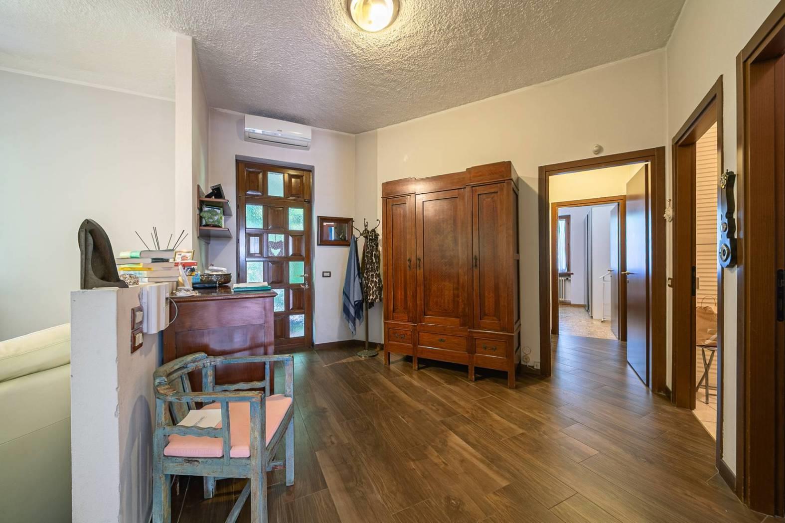 Al piano terra è presente un ampio soggiorno, una cucina abitabile , tre camere ,cabina armadio e doppi servizi