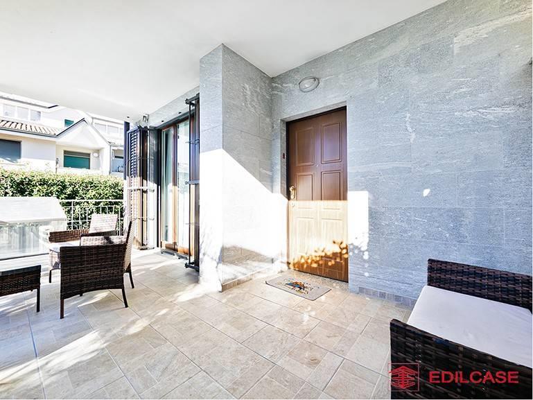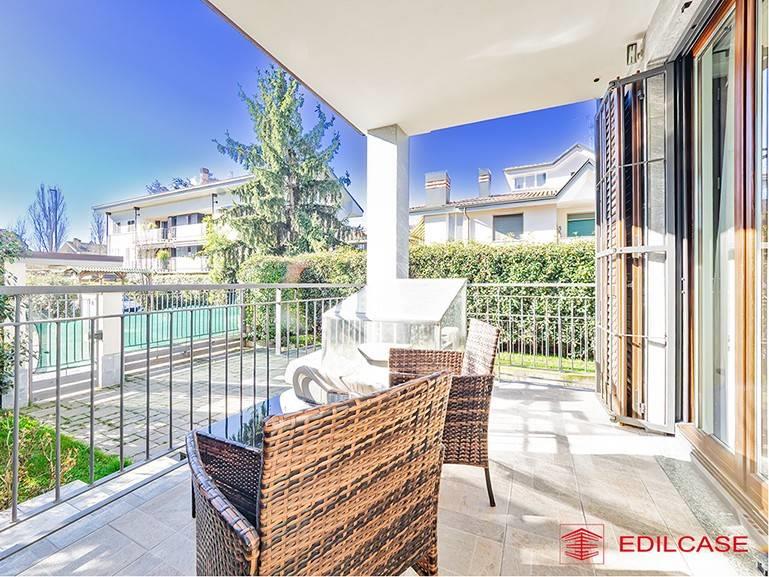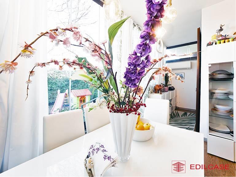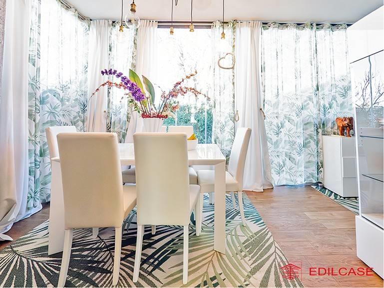 L'ingresso al piano terra ci accoglie in un ampio e luminoso soggiorno con cucina a vista, un ambiente conviviale che si estende naturalmente verso l'esterno grazie alla magnifica veranda chiusa con vetrate panoramiche (vepa). Questo spazio aggiuntivo, climatizzato e riscaldato, ci permette di vivere il contatto con il giardino in ogni stagione dell'anno, sfruttando anche la pratica zona esterna a terrazza per cene all'aperto.