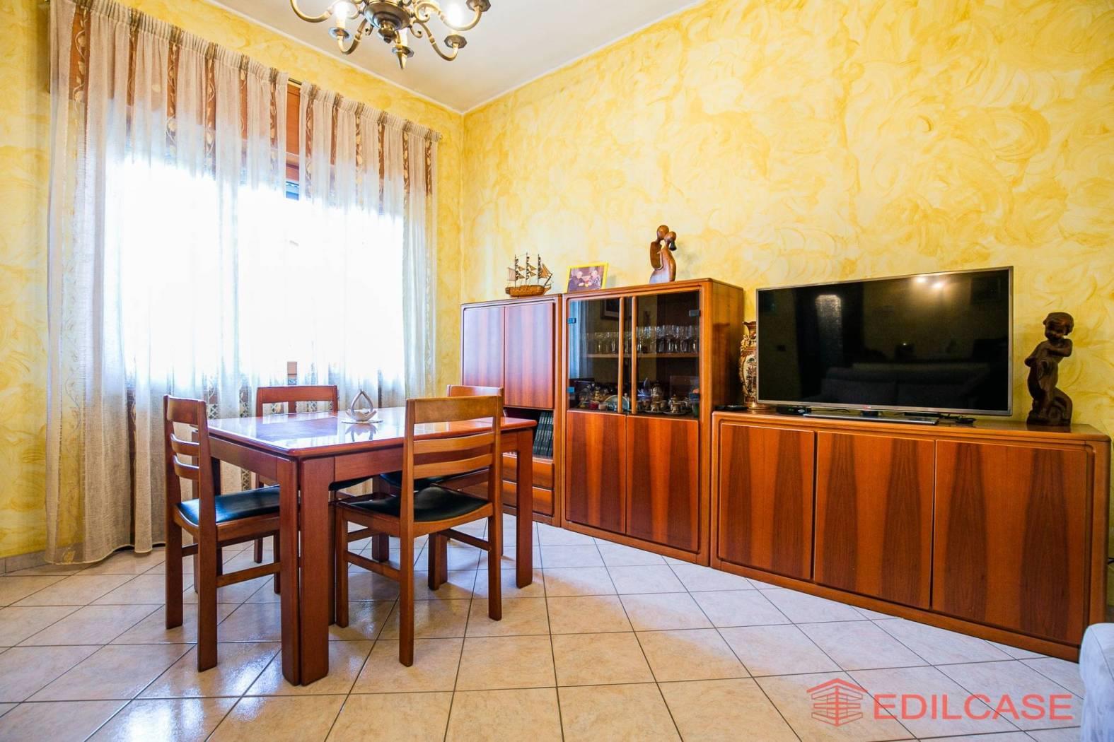 L'appartamento situato al piano rialzato, pronto da abitare, è composto dal grande soggiorno, dall'ampia sala da pranzo con cucina; la zona notte, collegata dal comodo disimpegno, è costituita dalle due camere matrimoniali ed il bagno.