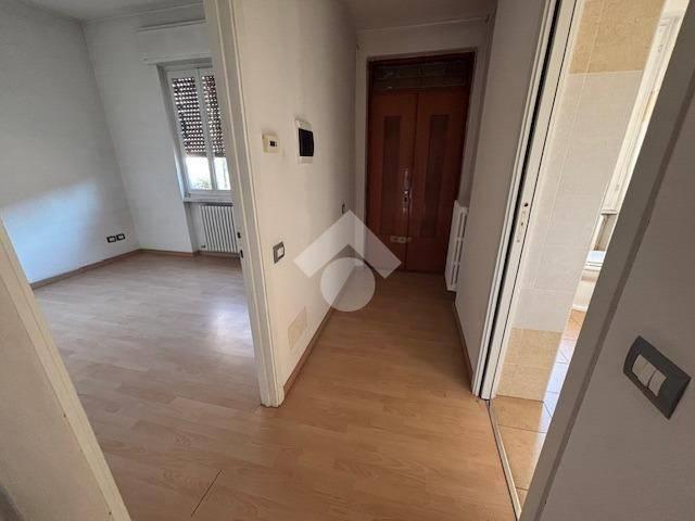 La soluzione offre la possibilità di creare un appartamento composto da tre locali e servizi con ampia zona giorno, due camere, bagno e ripostiglio, oltre ad ingresso indipendente e piccola area esterna di proprietà.