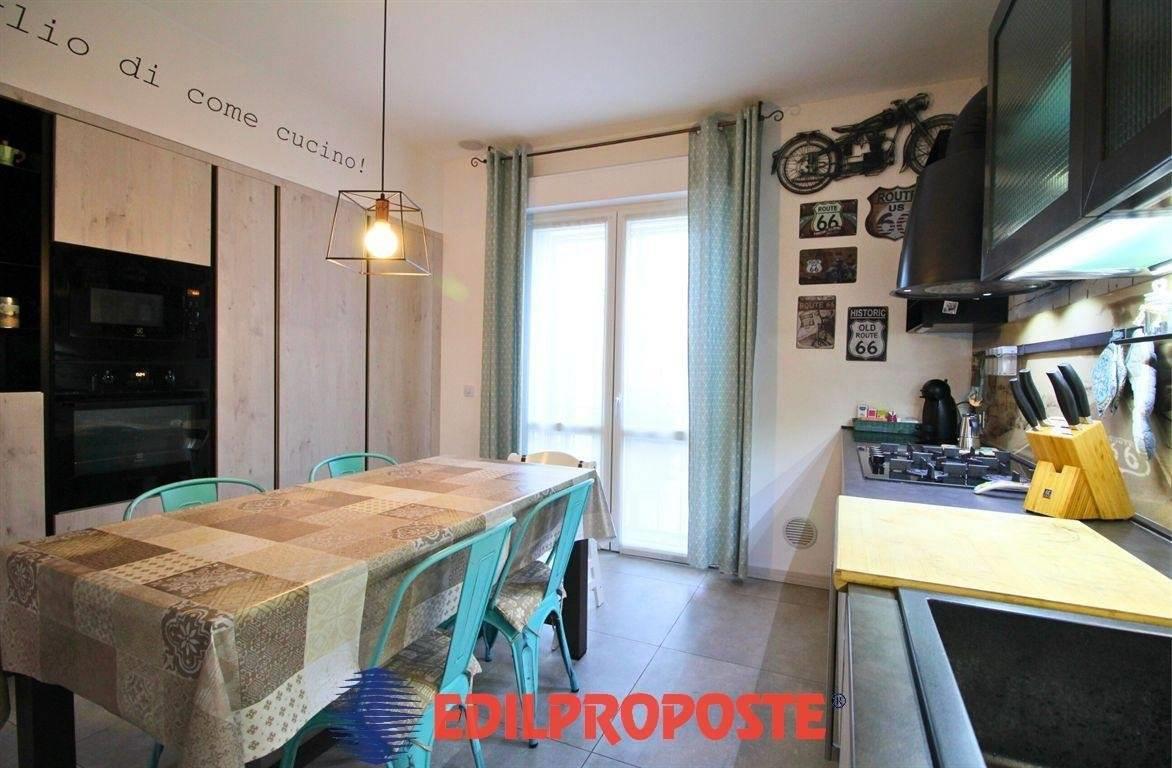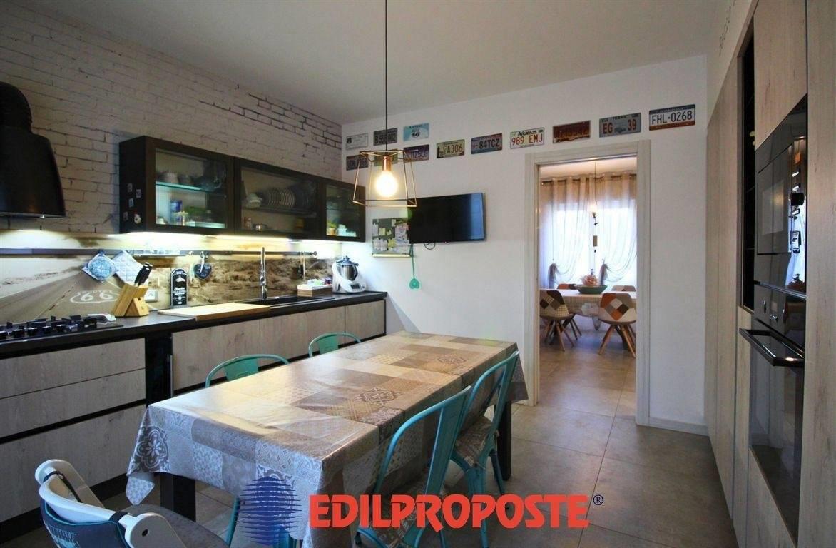 Comunicante con la sala da pranzo troviamo la grande cucina moderna, dotata di elettrodomestici di ultima generazione e materiali pregiati, perfetta per gli amanti della cucina. Quest’ultima si apre su un accogliente terrazzino perfette per le giornate all'aperto.