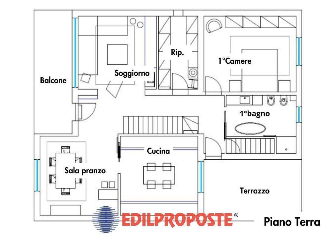 Piano Terra: ingresso su ampio soggiorno con camino e sala da pranzo, lo spazio luminoso e accogliente, rappresenta il cuore della casa, ideale per momenti di convivialità.