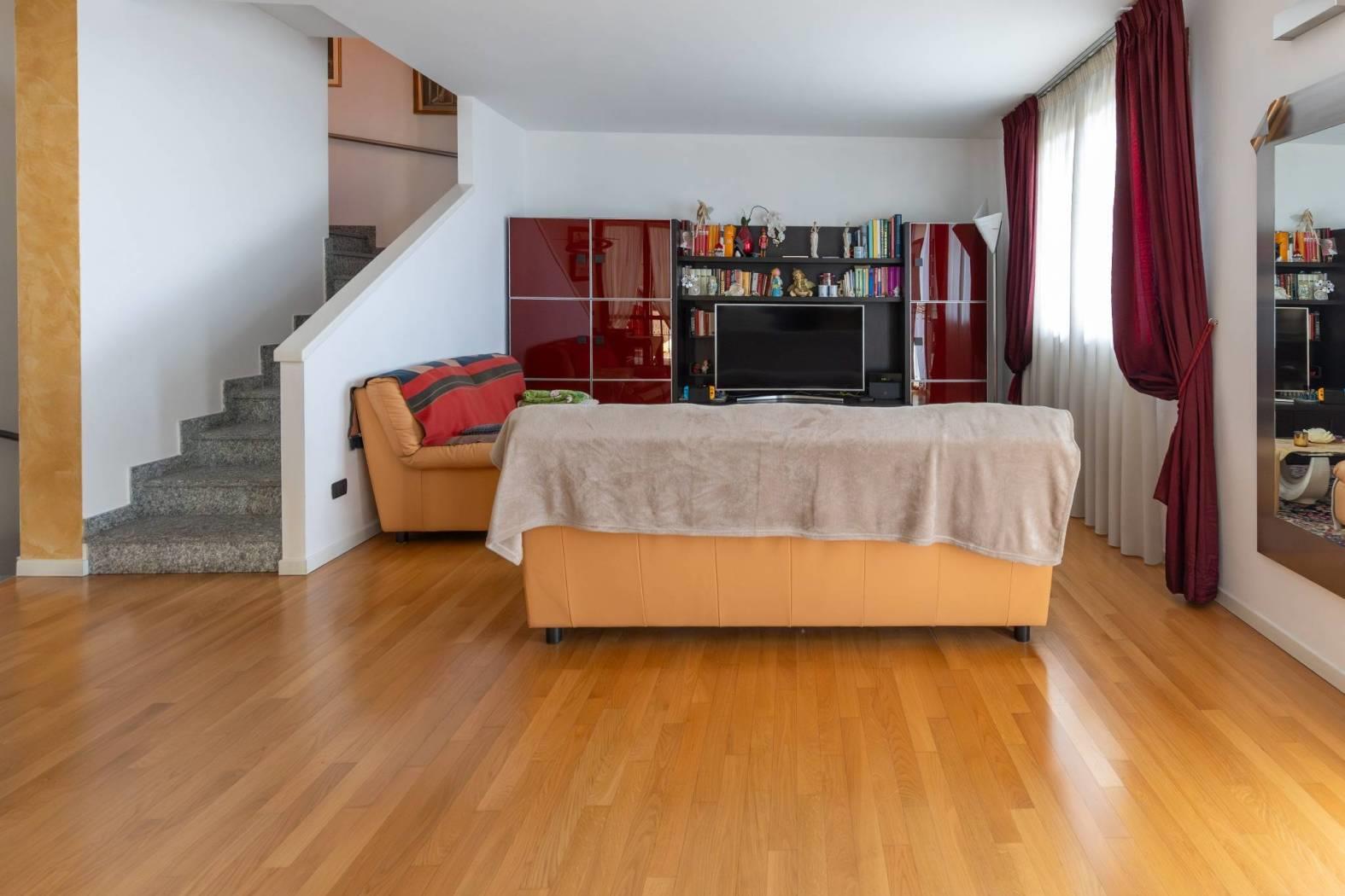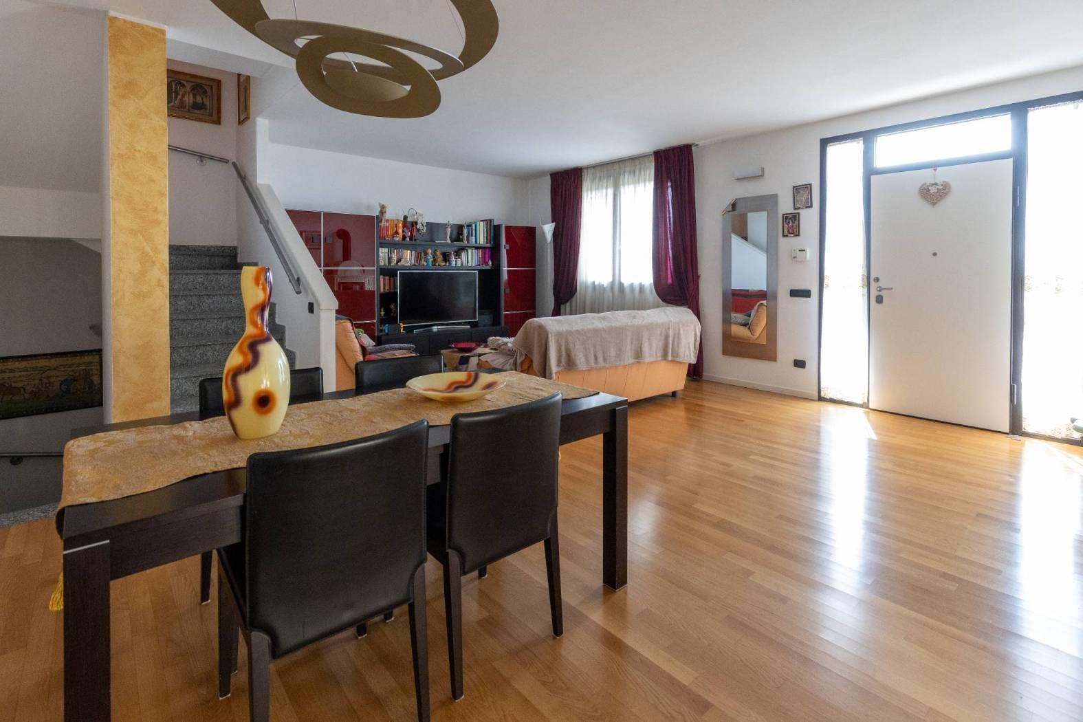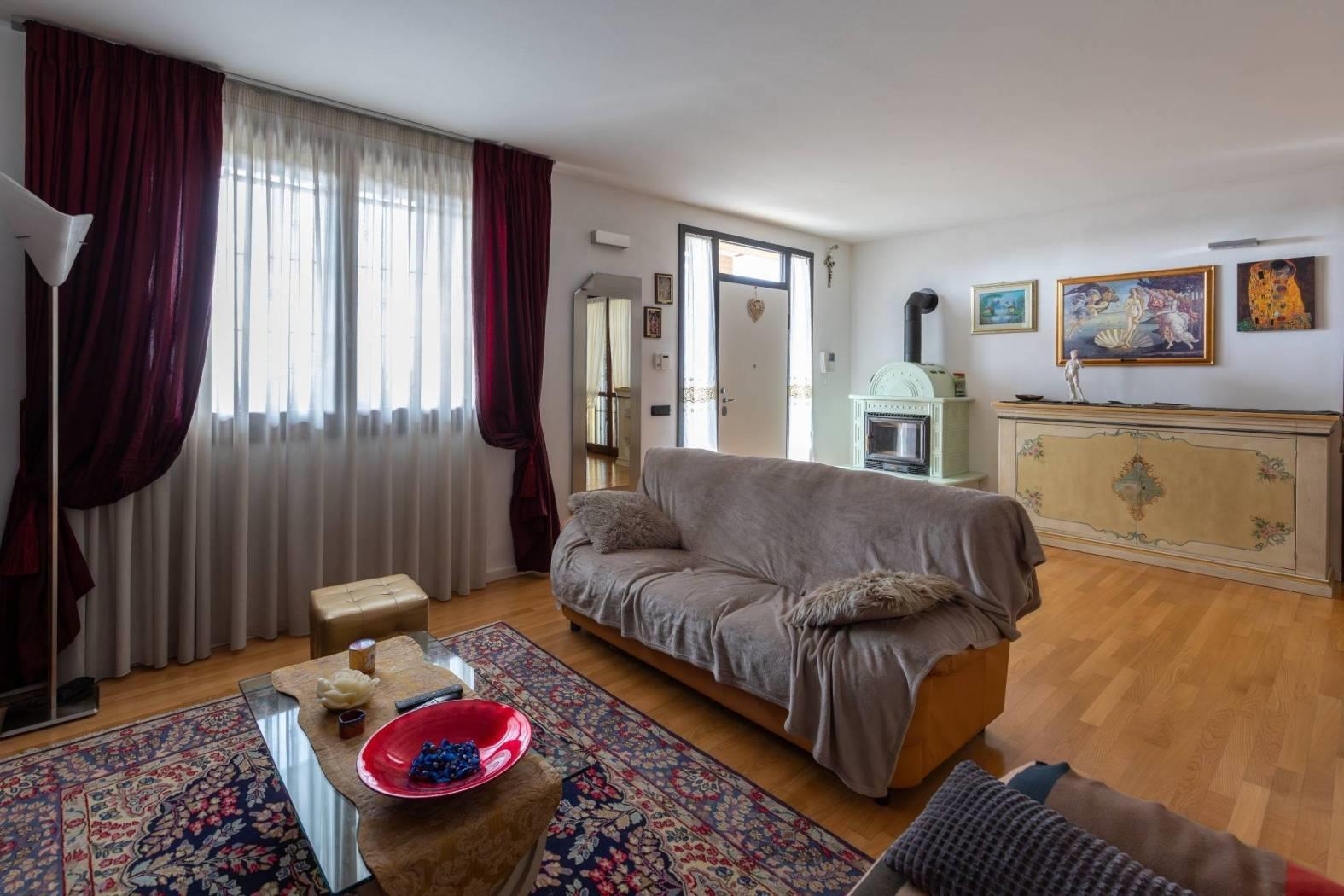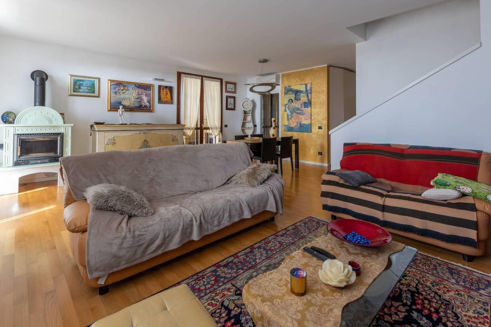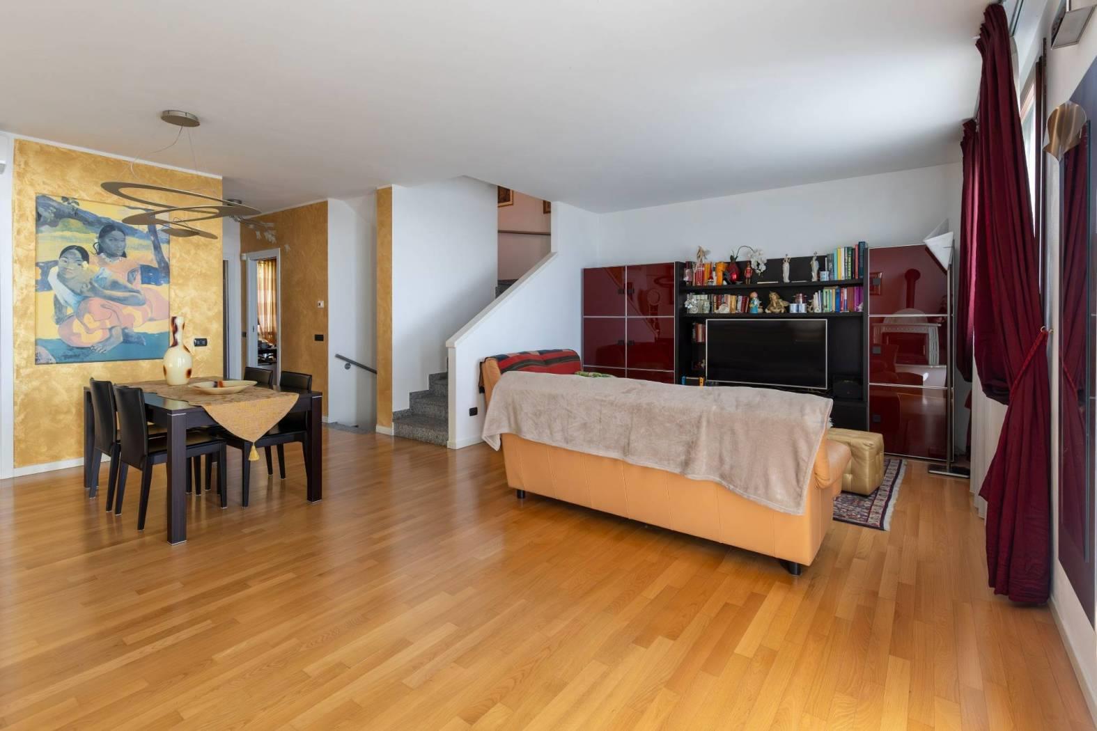 Vigano' alta ai confini con Barzano', in posizione panoramica e nel verde , contesto residenziale, recente e splendida villa che si sviluppa su due piani fuori terra oltre al piano seminterrato con portico a vetrate, portici, terrazzi ubicati su entrambi i piani e giardino privato su due lati. la villa si distingue per la perfetta combinazione tra comfort moderno e valorizzazione dell'ambiente. l'ingresso si apre su un ampio soggiorno luminoso con stufa a legna in maiolica e una cucina abitabile, entrambi godono dell'affaccio sul portico con vetrate e travi a vista perfetto per momenti di relax oltre ai terrazzi fronte e retro, locali ideali per vivere e accogliere in spazi conviviali e raffinati. un disimpegno con arredo su misura conduce al bagno completo di sanitari sospesi e mosaico di rivestimento e studio con affaccio sul giardino privato riservato. una scala interna accompagna al piano mansardato, dove si sviluppa la zona notte composta da due camere e un secondo bagno. la doppia altezza della camera , le travi a vista e la doppia esposizione donano all'abitazione ambienti luminosi ed un carattere architettonico distintivo, impreziositi da ottime finiture interne. nello specifico la cameretta affaccia dalla porta finestra sul terrazzo a pozzo con fantastica vista sulla catena del monte rosa, camera matrimoniale con doppia copertura sfalsata ed affaccio sul terrazzino vista collina e bagno con pavimentazione parquet/ ceramica di piccole piastrelle. il piano seminterrato e' composta da ampia taverna tutta pavimentata con parquet , locale studio, lavanderia e bagno completo. box doppio in larghezza con basculante automatizzata.