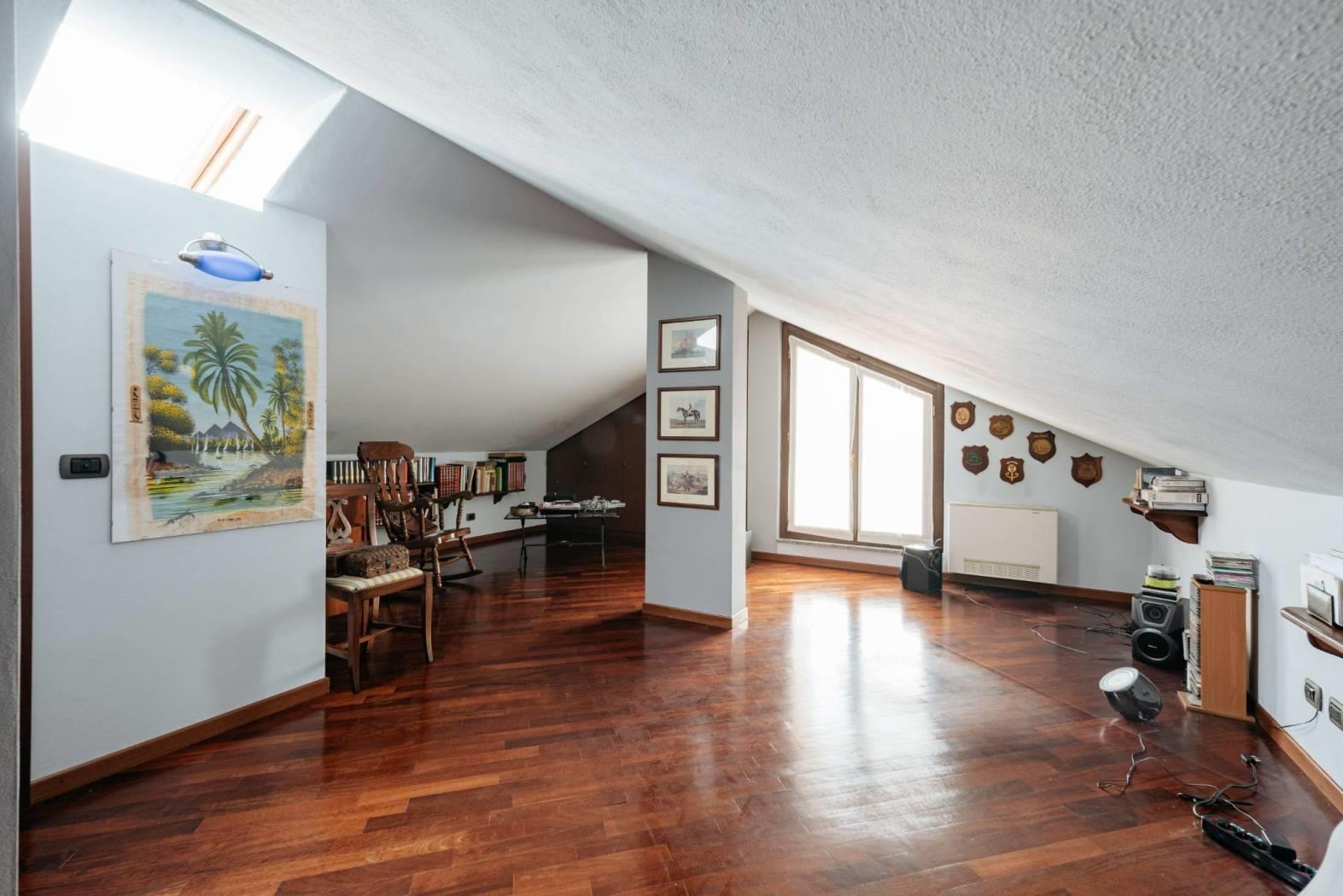 ✅ Mansarda open‑space con ripostiglio.