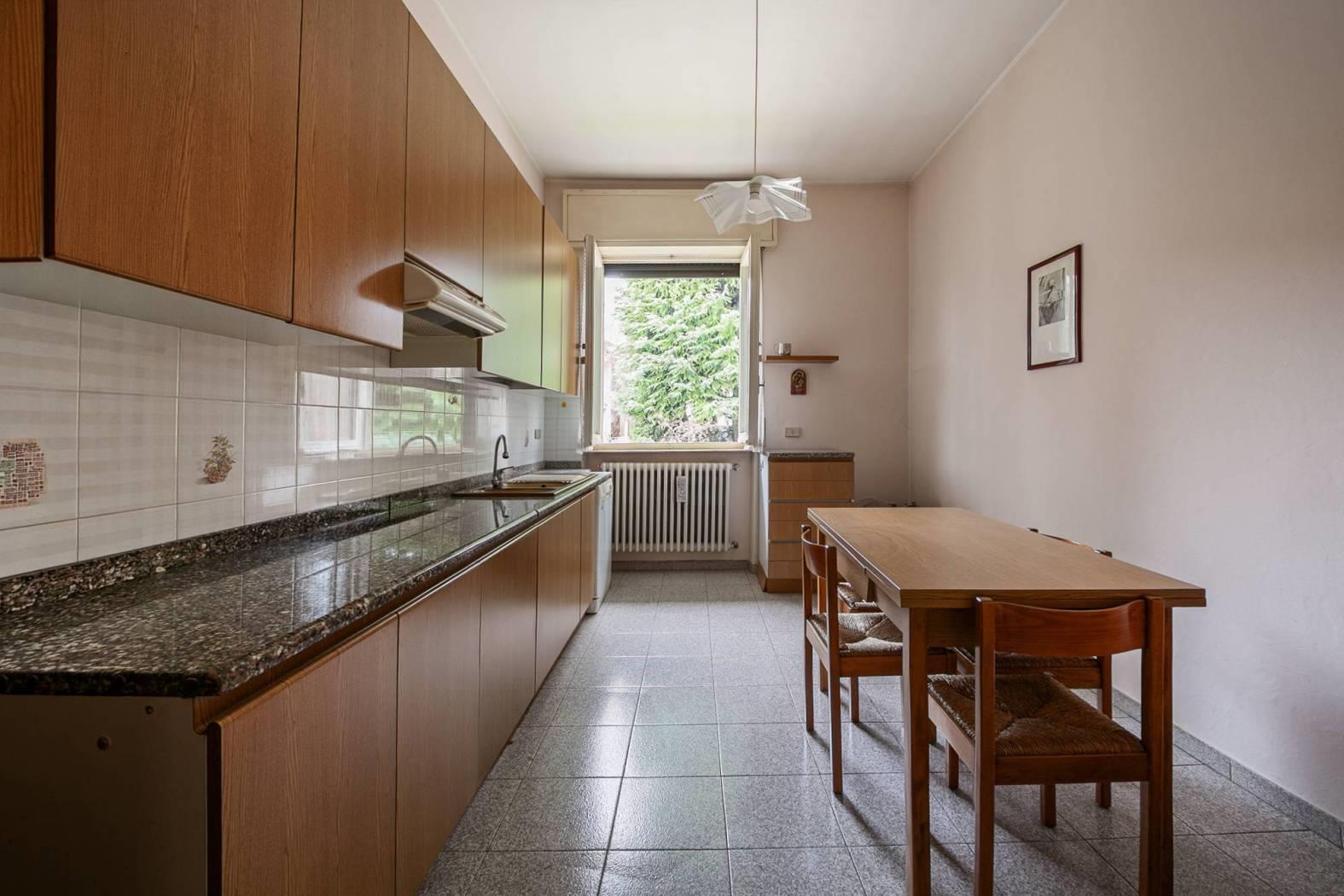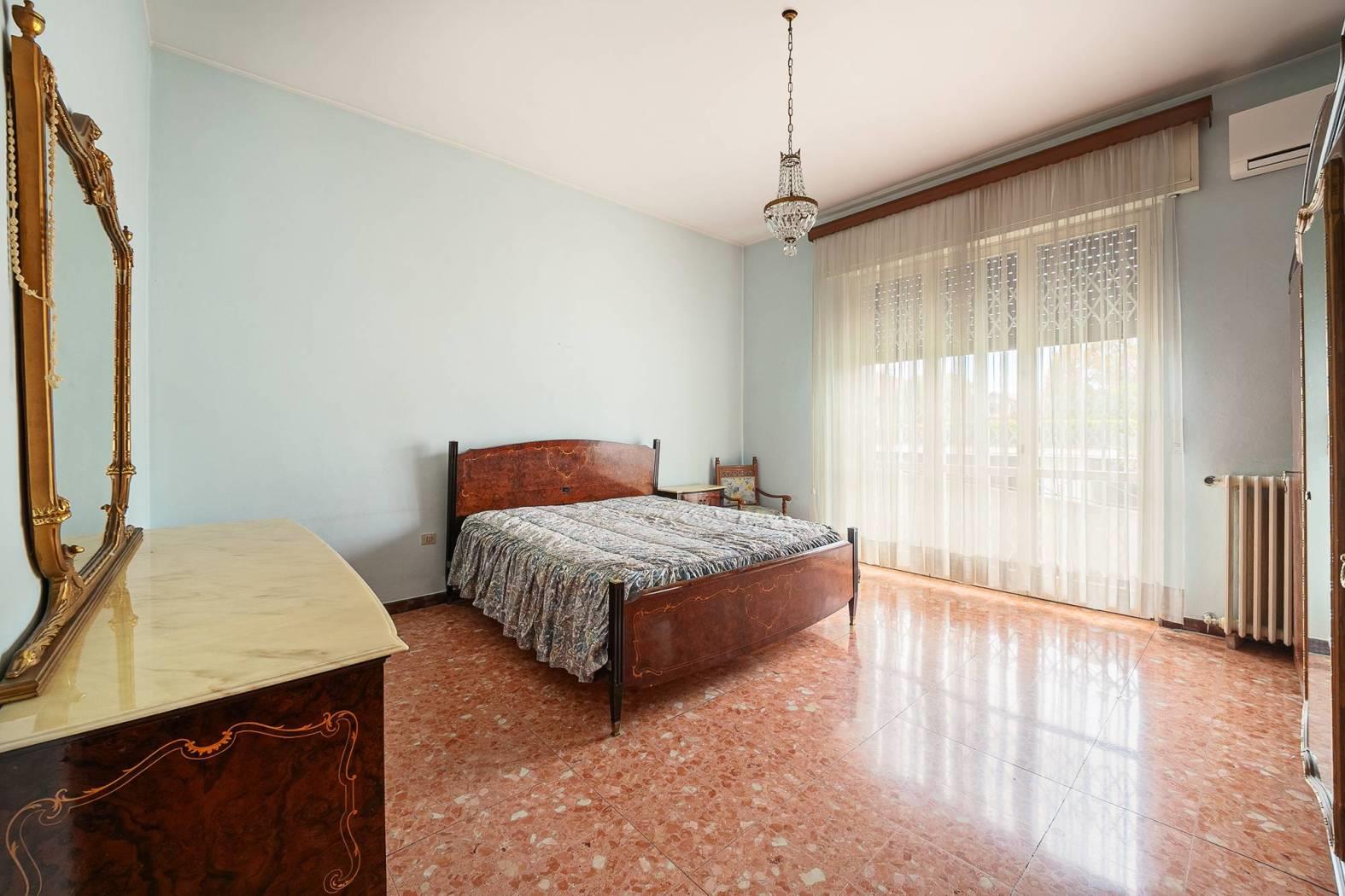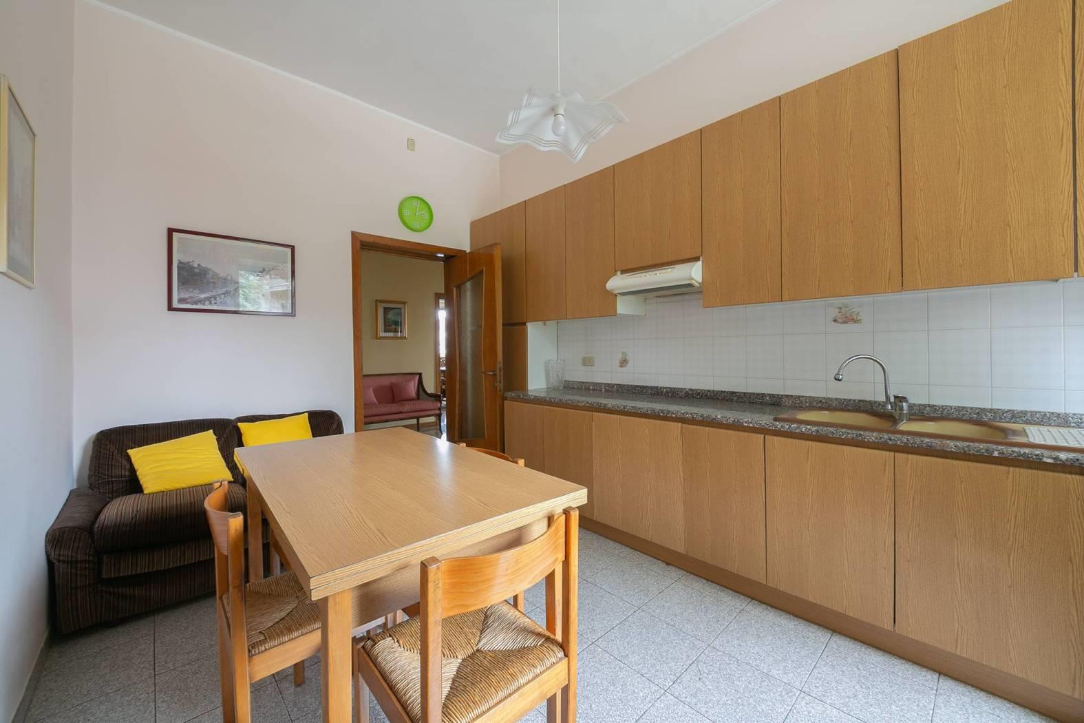 Piano rialzato: ingresso, luminoso soggiorno, cucina abitabile, locale tinello/angolo cottura, tre camere da letto, bagno e tre balconi.