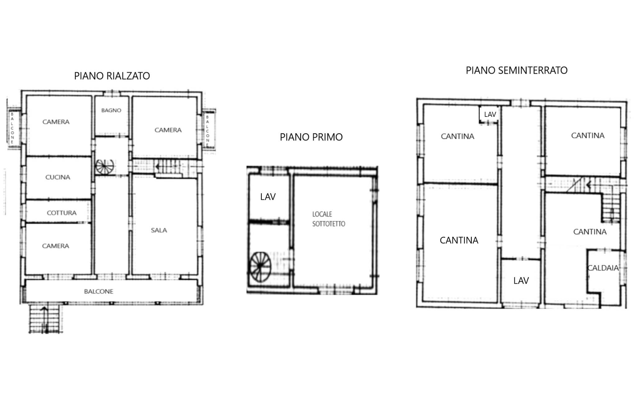 Piano seminterrato: tre locali ad uso cantina/taverna e due locali lavanderia