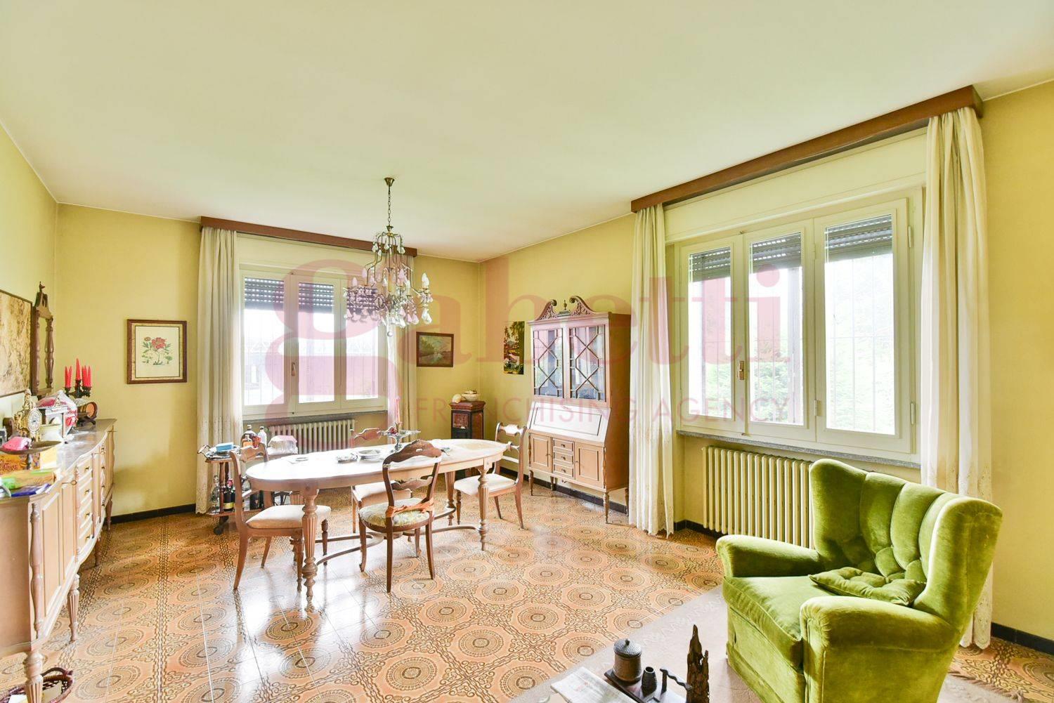 Vighizzolo: Proponiamo VILLA SINGOLA situata in una zona tranquilla e verdeggiante, circondata da un ampio giardino di 600 mq. La proprietà si sviluppa su un unico livello, offrendo una comoda distribuzione degli spazi interni. Con una superficie di 110 m², la villa è composta da 4 locali ben illuminati, una terrazza e un balcone che garantiscono momenti di relax all'aria aperta.