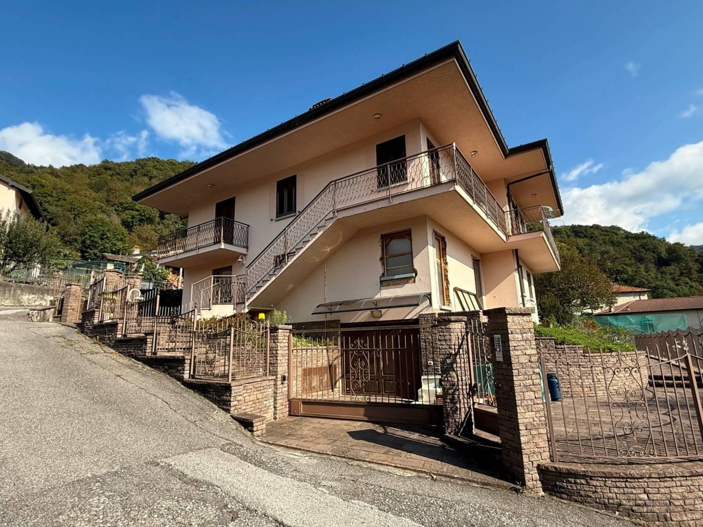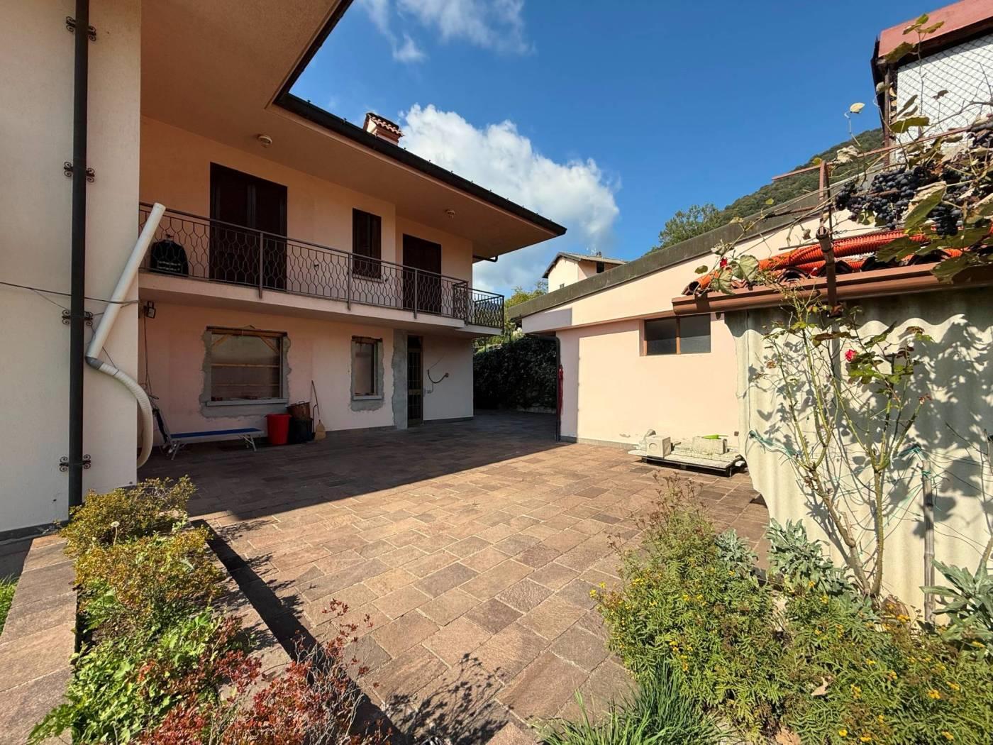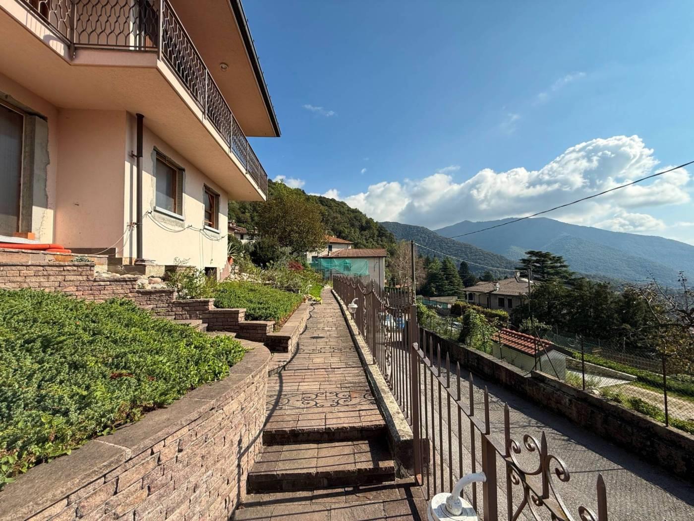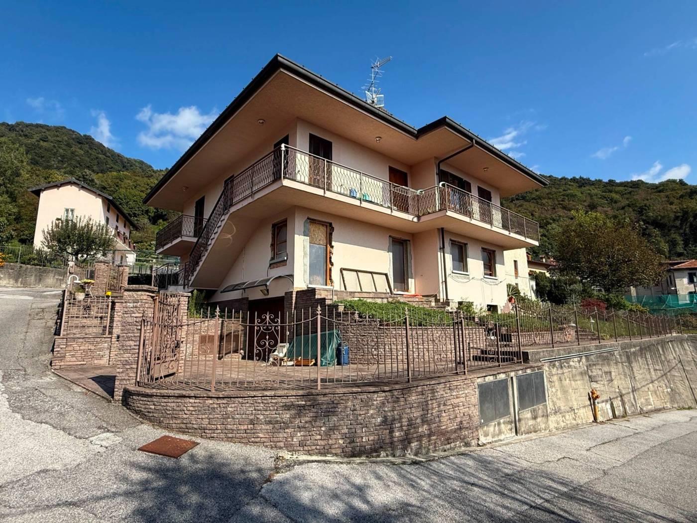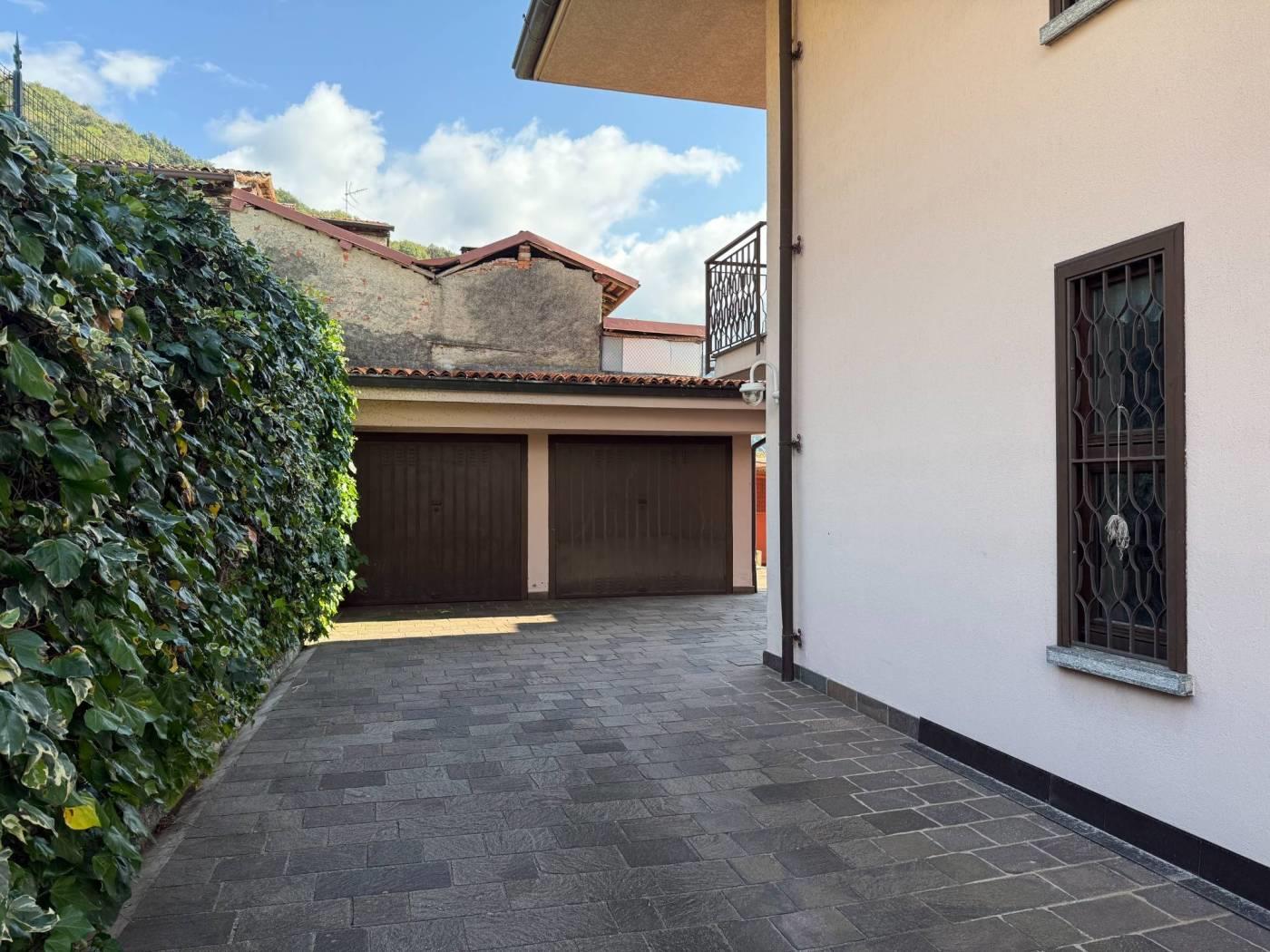 A pochi passi da Bellagio e dai principali servizi e raccordi stradali, proponiamo panoramica e soleggiata villa singola libera su quattro lati posta su due livelli abitativi oltre locali accessori al piano seminterrato. La proprietà è circondata da ampia area esterna di pertinenza di mq 480 adibita in parte a giardino privato ed in parte ad area di manovra pavimentata per il transito degli automezzi. La villa, costruita negli inizi degli anni '70, sviluppa una superficie commerciale di mq 214 (superficie complessiva totale del fabbricato mq 380 circa) ed è composta allo stato dei luoghi da due unità immobiliari di mq 120 per quanto concerne il piano terra e mq 136 per quanto riguarda il piano primo. Nello specifico, il piano terra è stato oggetto di parziale ristrutturazione nell'anno 2021 : fu predisposto un cambio di destinazione d'uso per la trasformazione dell'attuale locale sgombero ad abitazione. Quest'ultimo è composto da ingresso, soggiorno, cucina abitabile, camera matrimoniale con cabina armadio, camera singola, disimpegno e doppi servizi. L'appartamento al piano primo è invece composto da ingresso, soggiorno, cucina abitabile, tre camere, doppi servizi e tre balconi. Completano la proprietà ampio magazzino/laboratorio al piano seminterrato di mq 118 e due vani autorimessa di mq 16 ciascuno al piano terra.