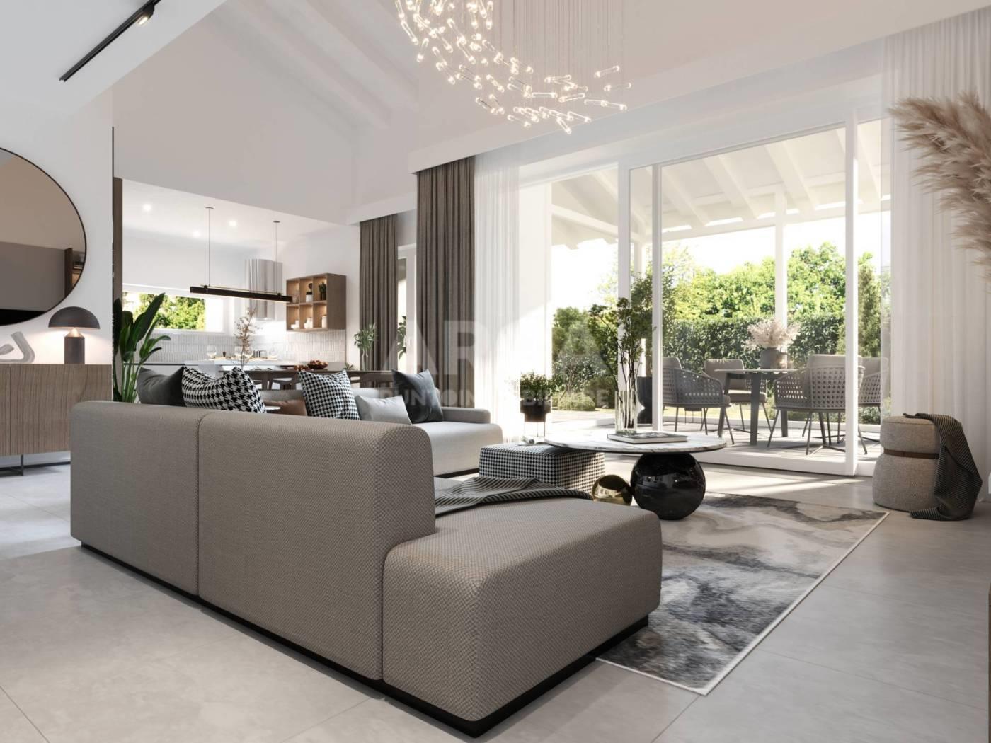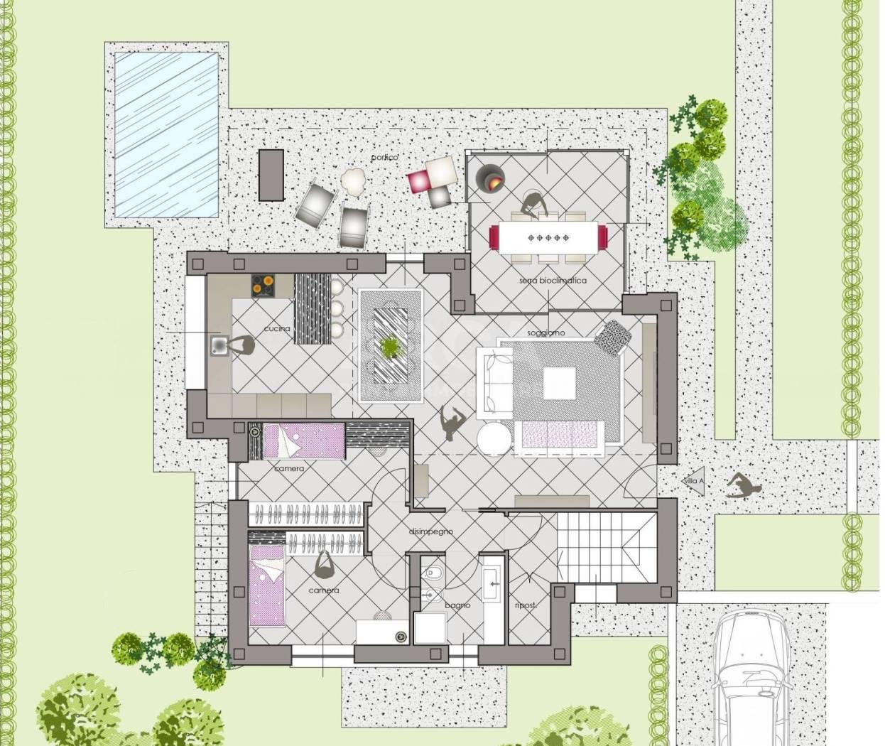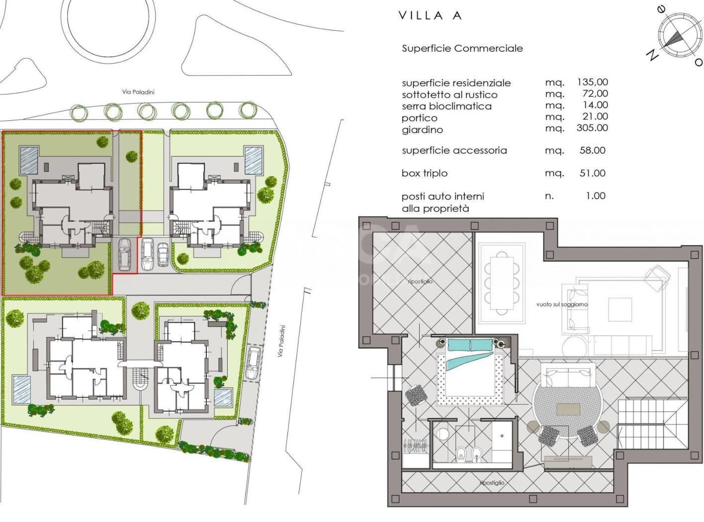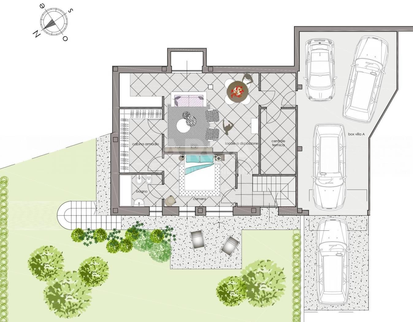 L'unità immobiliare sarà caratterizzata da piacevoli visuali incorniciate da ampie vetrate capaci di unire gli spaziosi e funzionali interni con gli spazi esterni di pertinenza. La villa sarà dotata di un bellissimo giardino di proprietà e di confortevoli portici. La particolare zona living a doppia altezza sarà affacciata sulla luminosa serra bioclimatica, una moderna soluzione architettonica che riunisce in sé caratteristiche di biocompatibilità, comfort ed eleganza, dotando l'abitazione di uno spazio particolare ed esclusivo dove trascorrere il proprio tempo libero in tutte le stagioni.