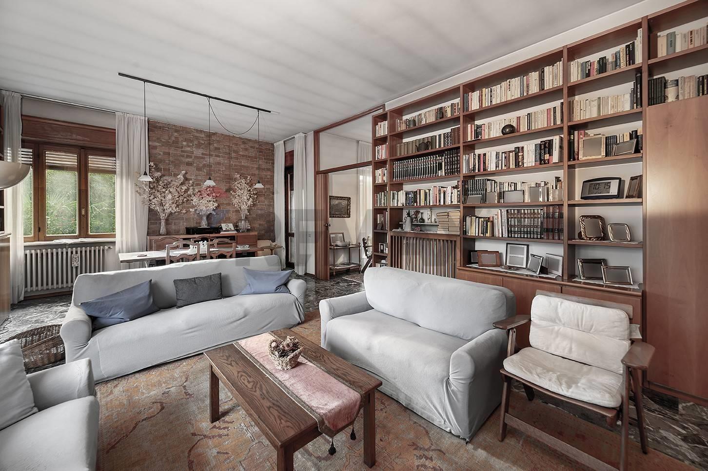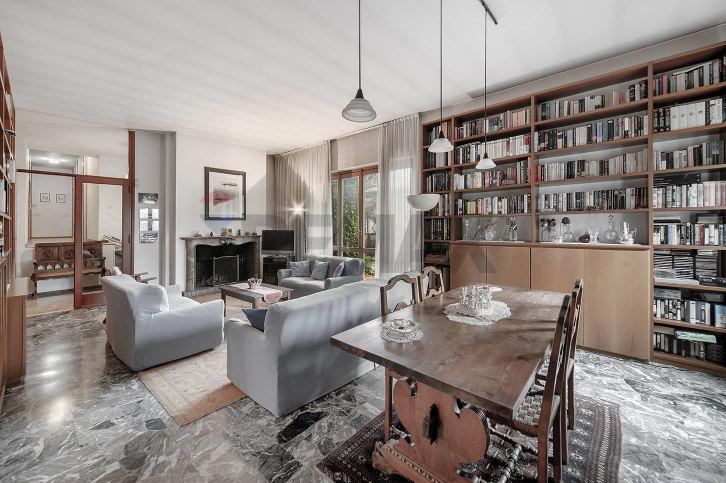 La proprietà si distingue per la luminosità degli ambienti e la distribuzione razionale degli spazi: al piano rialzato, un ampio ingresso conduce al soggiorno impreziosito dal suggestivo camino in marmo pregiato e uscita su terrazza esterna e giardino, segue la sala da pranzo, una cucina abitabile con affaccio su un pratico terrazzino e un comodo ingresso di servizio.
