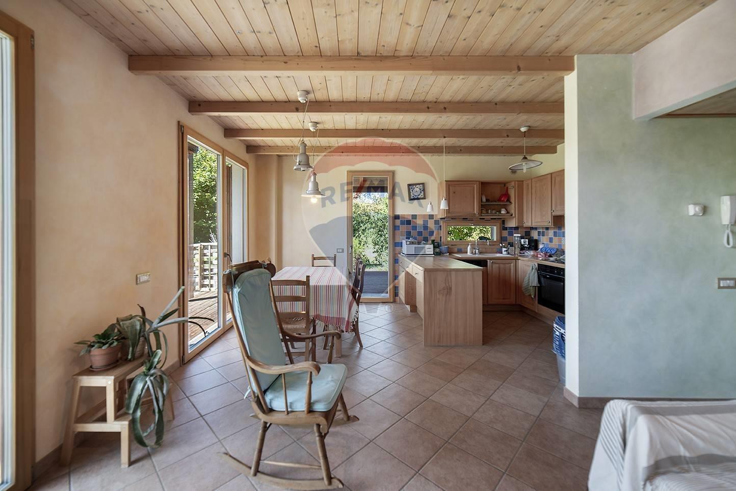 La proprietà si sviluppa su due livelli abitativi con una divisione degli spazi interni analoga in entrambi e pensata per ospitare anche due nuclei familiari, poiché ad ogni piano troviamo l’ingresso nell’ampio soggiorno con cucina a vista, due camere e un bagno, oppure per un’unica famiglia grazie alla presenza della scala interna che collega i piani. Al piano interrato troviamo un locale tecnico che ospita la caldaia costituita da un sistema collegato ai pannelli solari termici e fotovoltaici, una piccola pompa di calore e una caldaia a pellets per le emergenze, oltre alla spaziosa taverna con stufa a legna, una cantina e una comoda lavanderia. L’ampio box di 38 mq e il giardino sui quattro lati, completano la proposta.