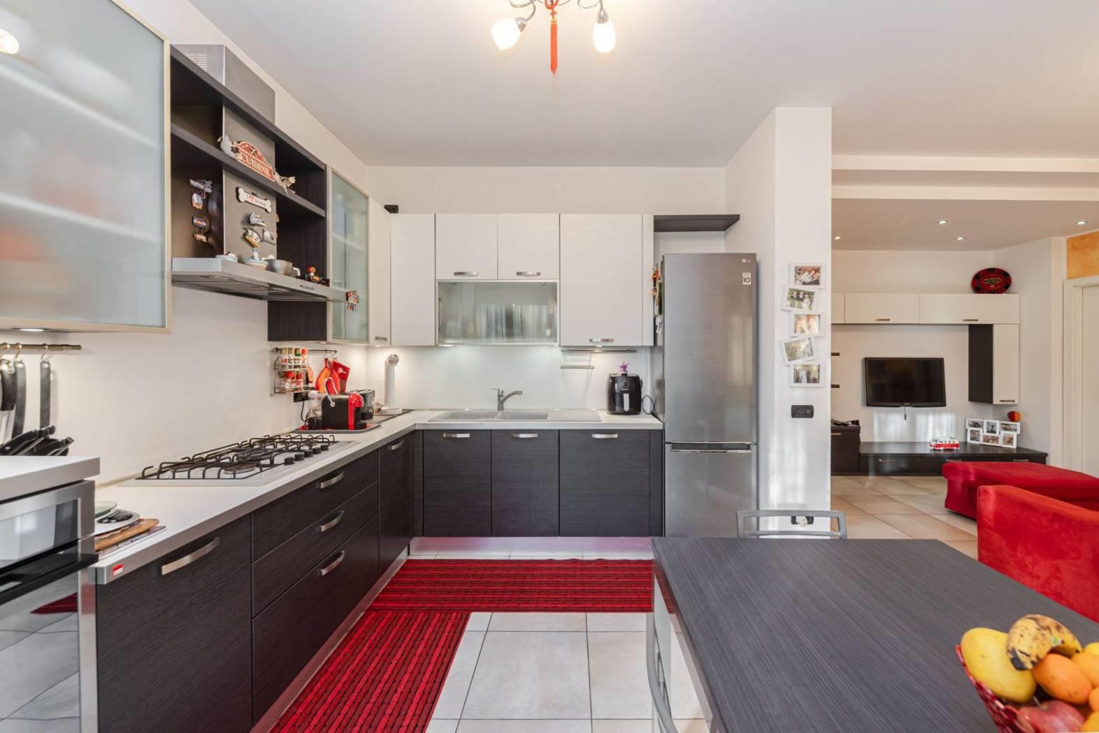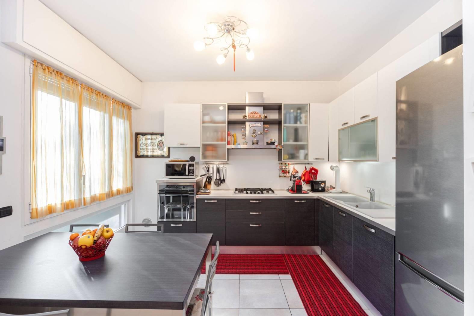 L'appartamento al piano terra è un tre locali di mq. 90 completamente ristrutturato nel 2010 con riscaldamento a pavimento composto da ingresso, soggiorno con cucina lasciata a vista, due camere da letto, bagno, ripostiglio e portico coperto mentre l'appartamento a piano primo è un quattro locali di mq. 180 composto da ingresso, soggiorno triplo con doppio salone con camino e sala da pranzo, cucina abitabile con tinello e balcone, due camere da letto, cabina armadio e bagno oltre cantina/lavanderia al piano interrato. Soluzione ideale per due nuclei familiari perché i due appartamenti sono completamente indipendenti sia a livello di impianti e utenze sia catastalmente. Tetto rifatto nel 2018.