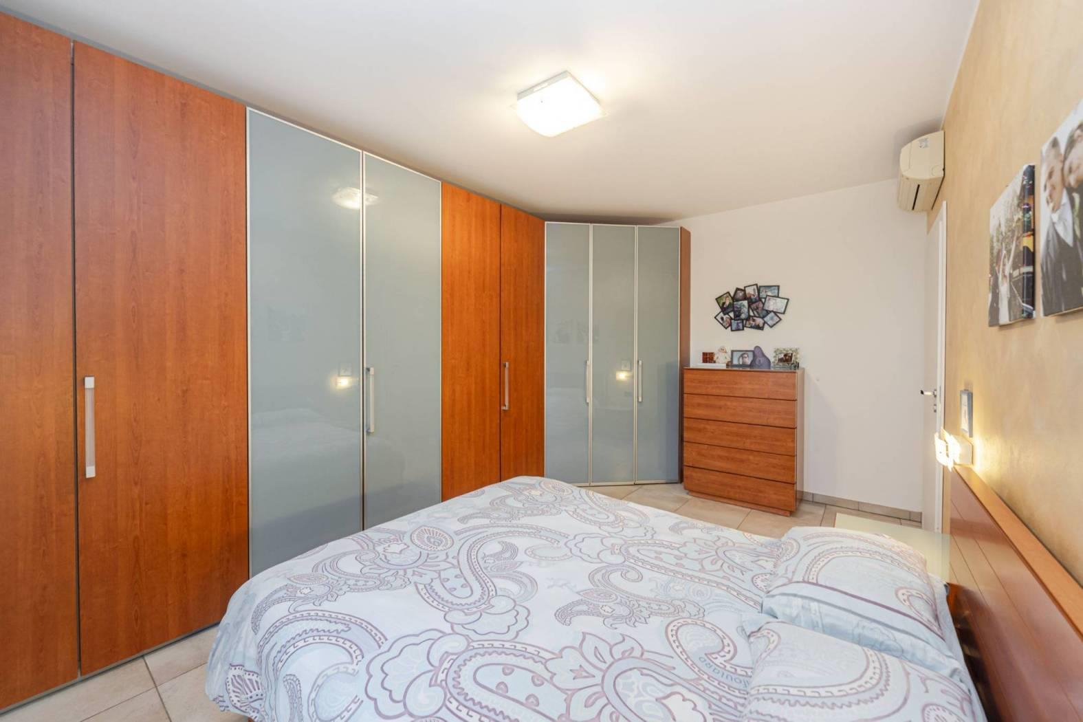 L'appartamento al piano terra è un tre locali di mq. 90 completamente ristrutturato nel 2010 con riscaldamento a pavimento composto da ingresso, soggiorno con cucina lasciata a vista, due camere da letto, bagno, ripostiglio e portico coperto mentre l'appartamento a piano primo è un quattro locali di mq. 180 composto da ingresso, soggiorno triplo con doppio salone con camino e sala da pranzo, cucina abitabile con tinello e balcone, due camere da letto, cabina armadio e bagno oltre cantina/lavanderia al piano interrato. Soluzione ideale per due nuclei familiari perché i due appartamenti sono completamente indipendenti sia a livello di impianti e utenze sia catastalmente. Tetto rifatto nel 2018.