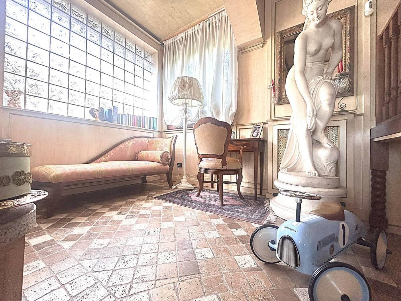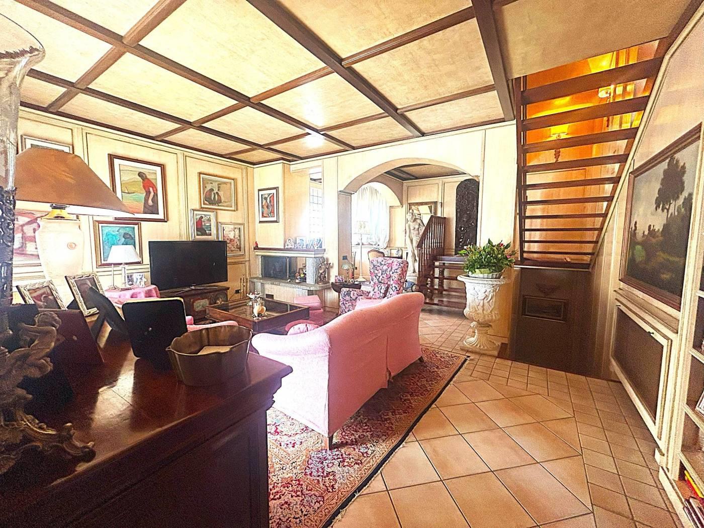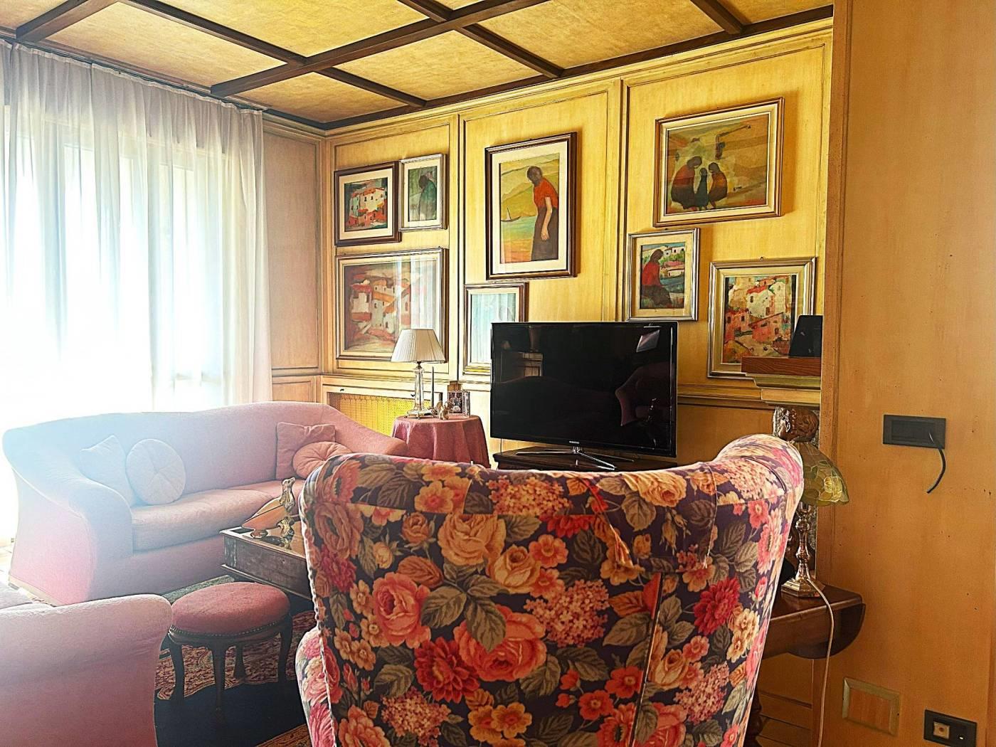Piano terra: ingresso di rappresentanza, elegante zona giorno con ampio salotto, salottino relax e sala da pranzo, arricchita da boiserie in ogni ambiente. Cucina abitabile e bagno di cortesia.