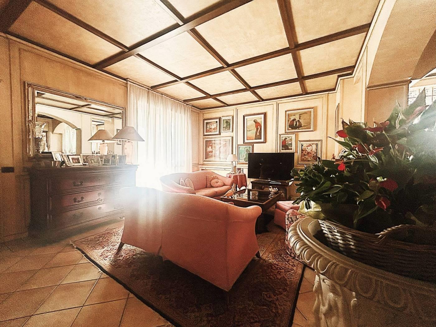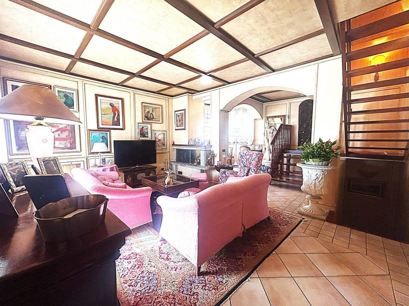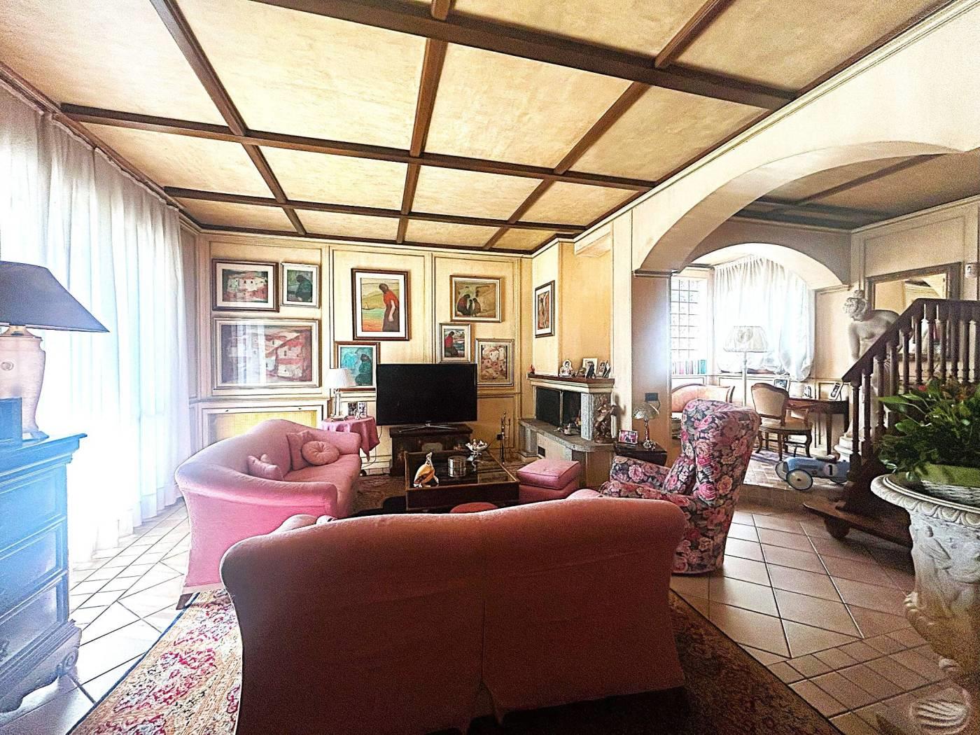 Piano terra: ingresso di rappresentanza, elegante zona giorno con ampio salotto, salottino relax e sala da pranzo, arricchita da boiserie in ogni ambiente. Cucina abitabile e bagno di cortesia.