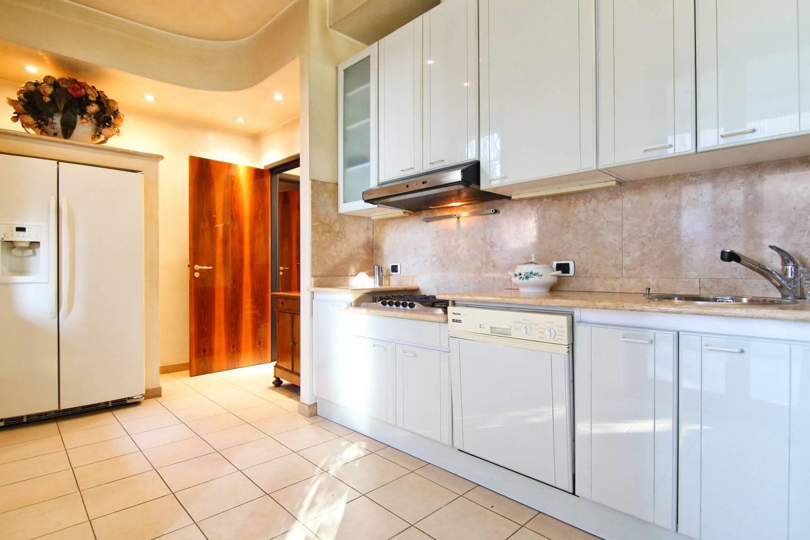 Accessibile dall’esterno, al pano seminterrato è presente il locale caldaia e l’indispensabile ampia cantina, spazio utile per gli attrezzi di manutenzione della villa e deposito oggetti, predisposta per la seconda cucina.