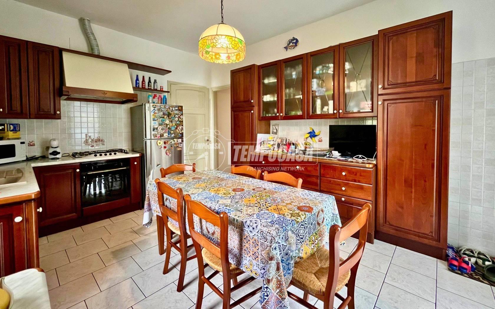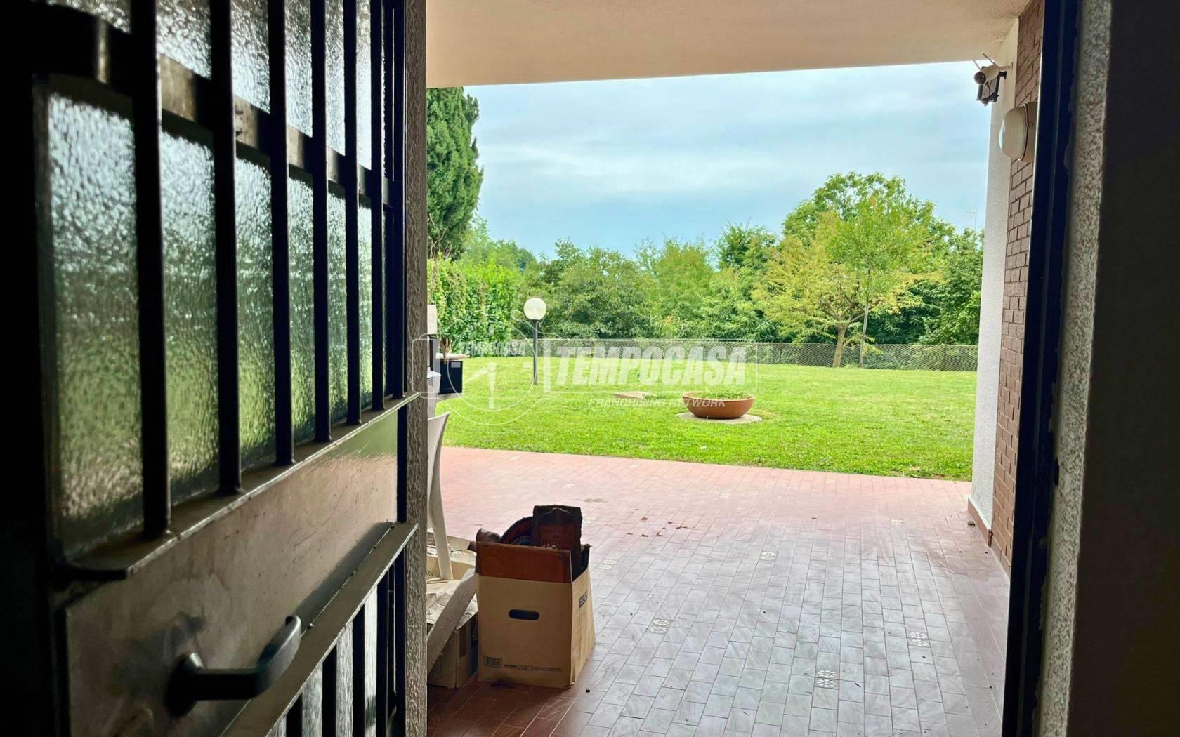 Dalla zona giorno si accede alla cucina abitabile, con affaccio diretto sul giardino, e alla zona notte, composta da tre camere da letto (due matrimoniali e una singola) e da un bagno finestrato completamente ristrutturato due anni fa.