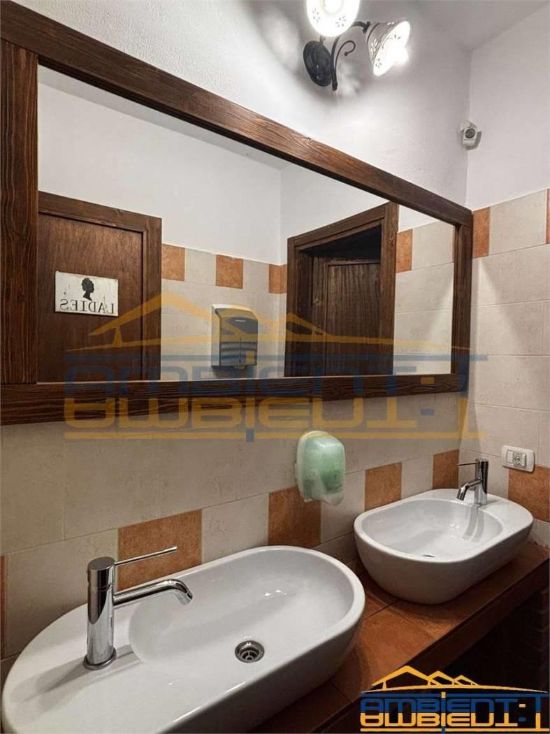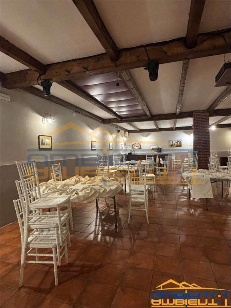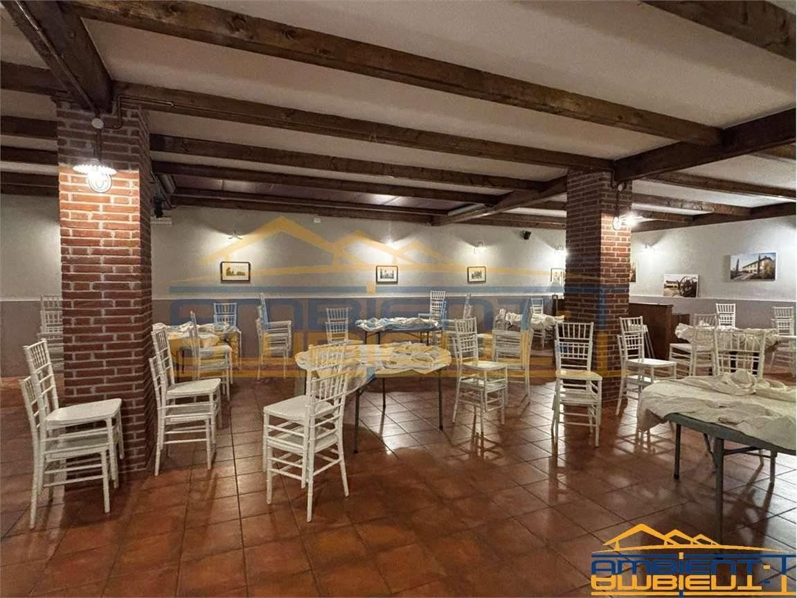 • Il piano terra di 150 mq è destinato a commerciale e ospita il salone con camino in pietra, la zona bar, la cucina professionale, il dehor di circa 100 mq. Il piano è collegato con ascensore al livello interrato.