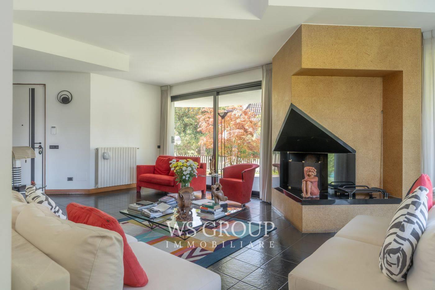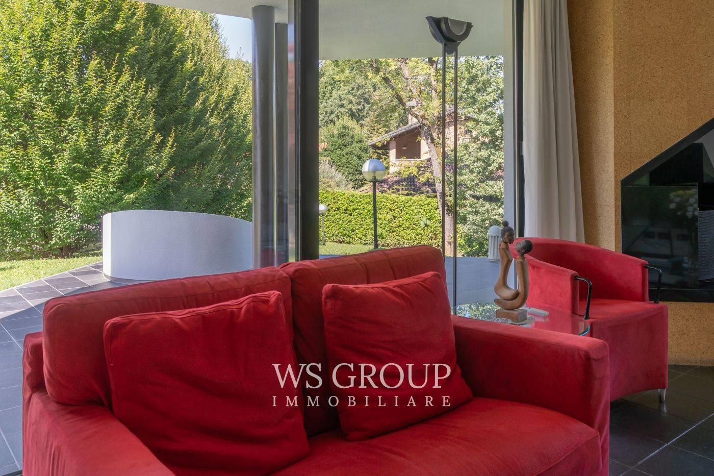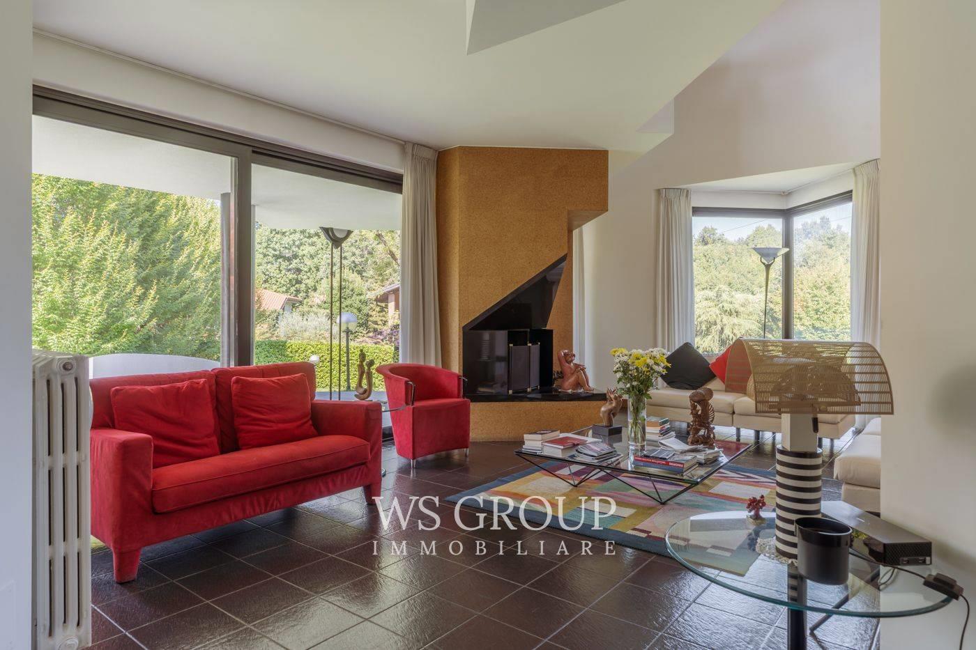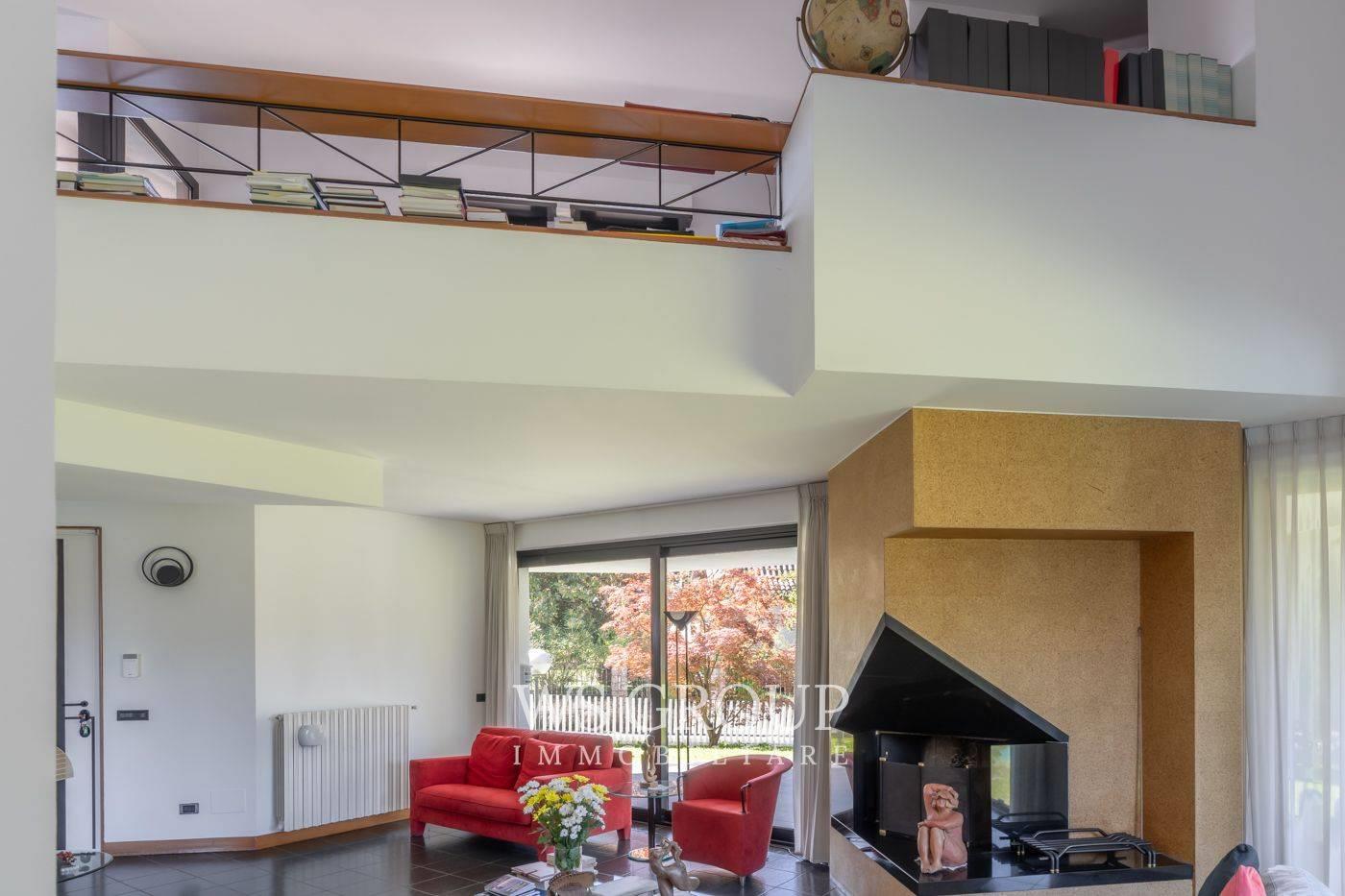 Progettata dall’architetto Pini per rispondere alle esigenze della committenza, la villa si sviluppa su tre livelli abitativi, circondata da un rigoglioso giardino privato con piscina.