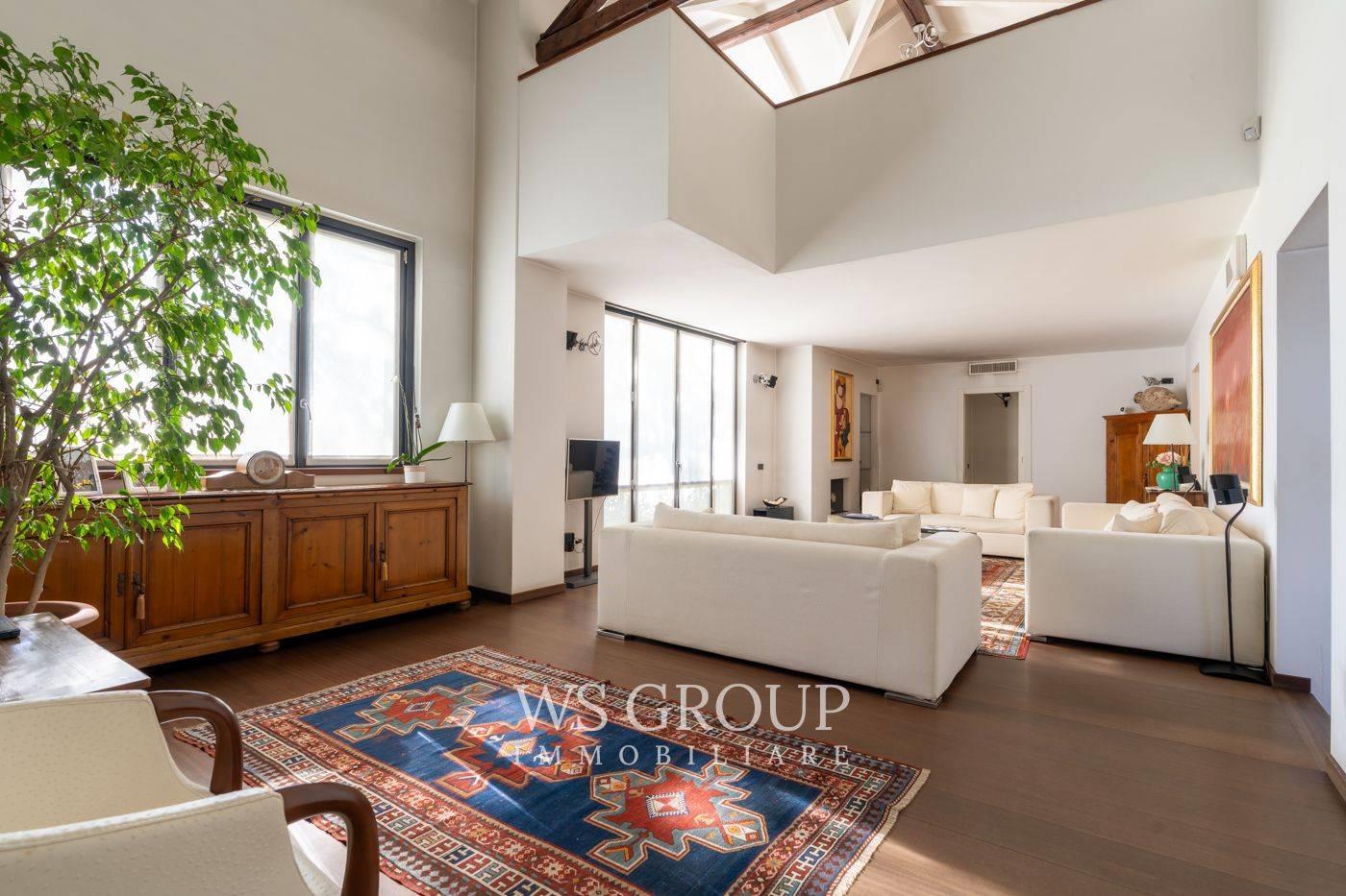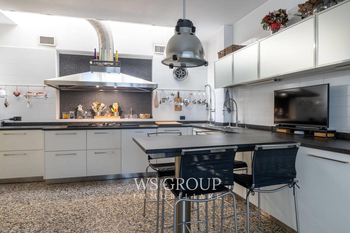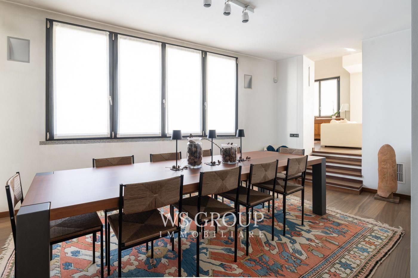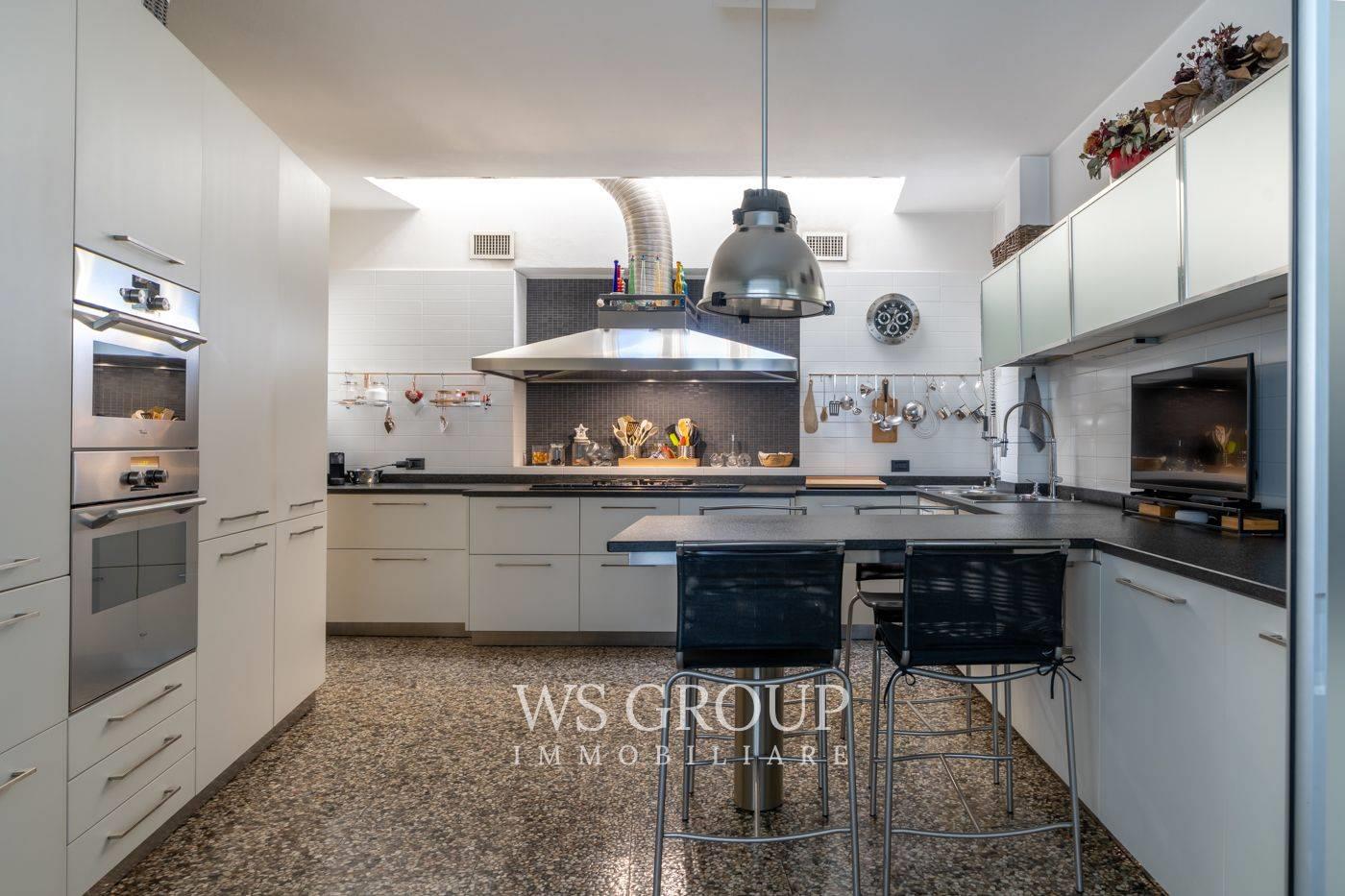 Al piano terra si apre una scenografica zona living a tutta altezza, caratterizzata da grande luminosità e profondità visiva. La cucina abitabile con area pranzo è di dimensioni generose e si integra armoniosamente con la zona giorno.