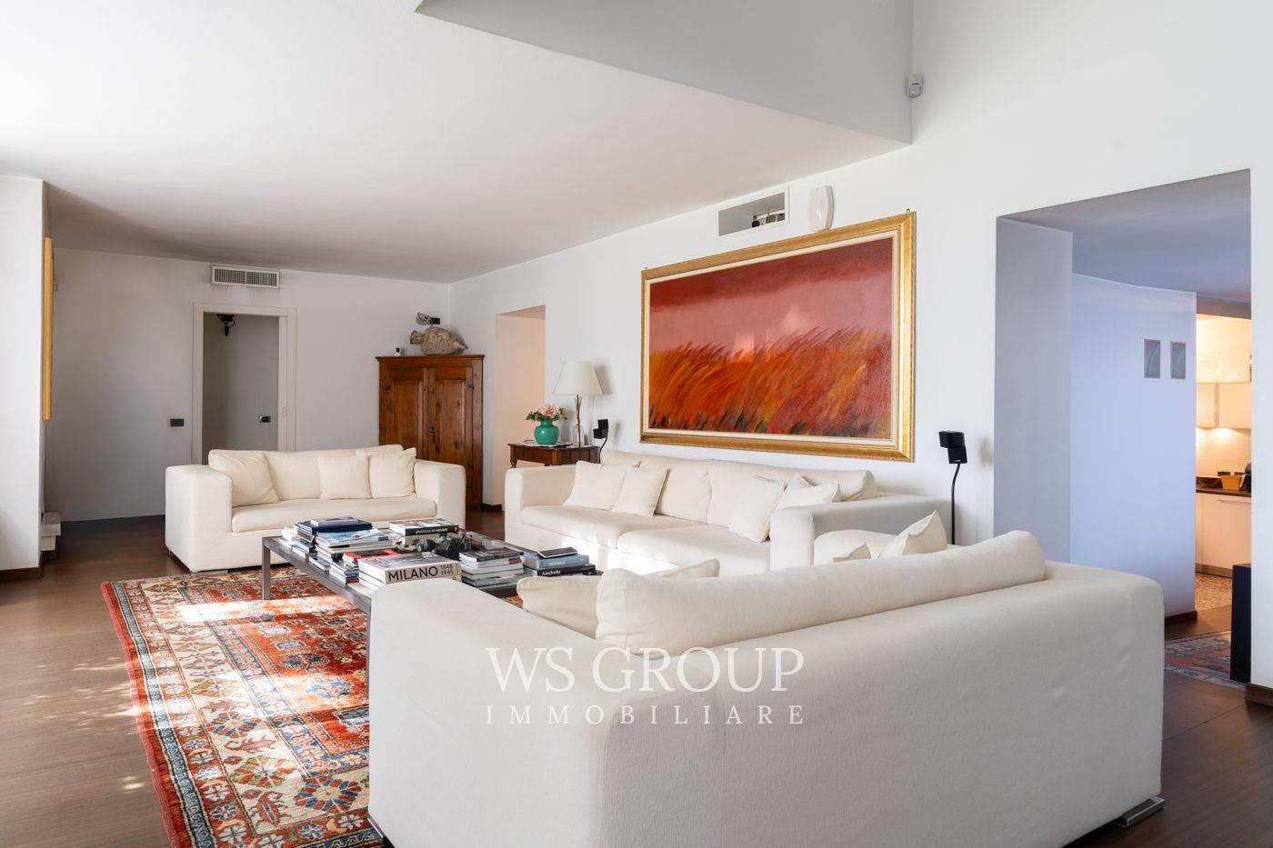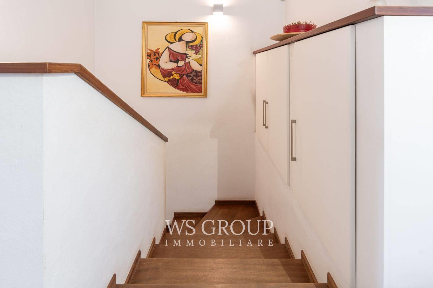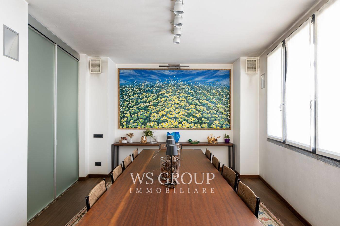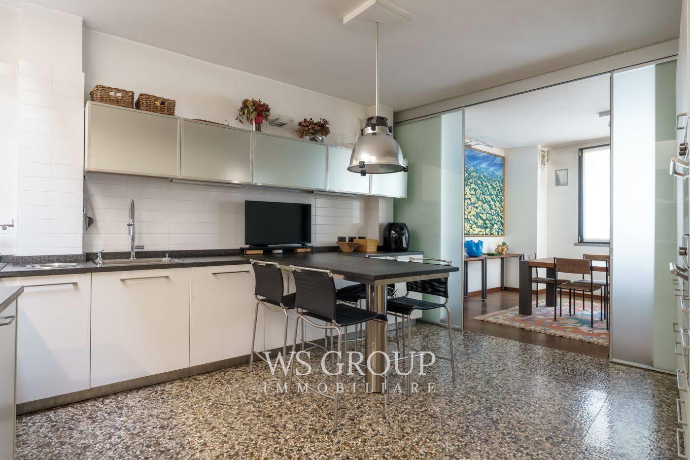 Al piano terra si apre una scenografica zona living a tutta altezza, caratterizzata da grande luminosità e profondità visiva. La cucina abitabile con area pranzo è di dimensioni generose e si integra armoniosamente con la zona giorno.