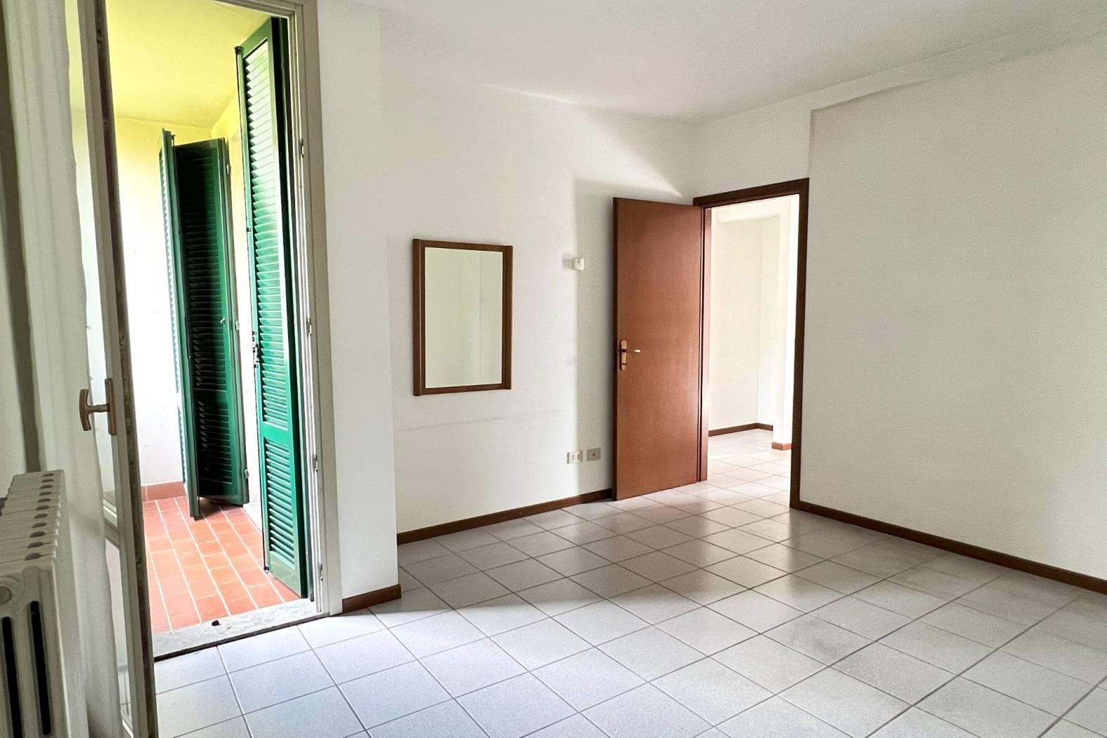 Al piano primo invece si sviluppa la zona notte composta da due camere da letto, una delle quali con accesso al primo balcone, una stanza adibita a studio/guardaroba, un bagno con uscita sul secondo balcone e un piccolo ripostiglio.