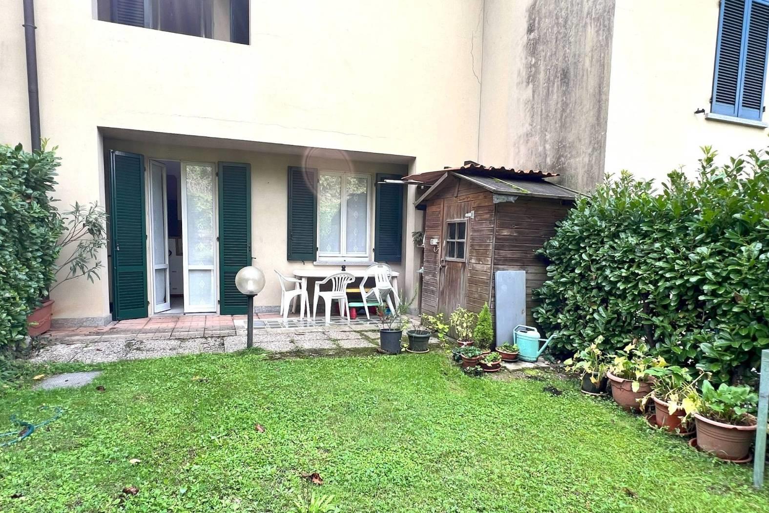 La soluzione proposta si trova all’interno di un piccolo residence costituito da due fabbricati suddivisi in 14 villette a schiera dotate di aree verdi comuni e di spazi esterni assegnati all'uso delle singole unità ma non di proprietà esclusiva.