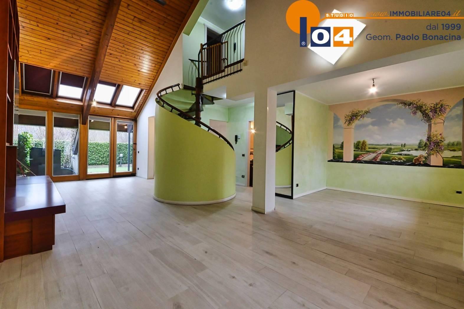 Abitazione moderna‚ efficiente e pronta da abitare di ca. 200 mq con giardino privato‚ portico‚ taverna‚ lavanderia‚ box doppio e posto auto esterno.