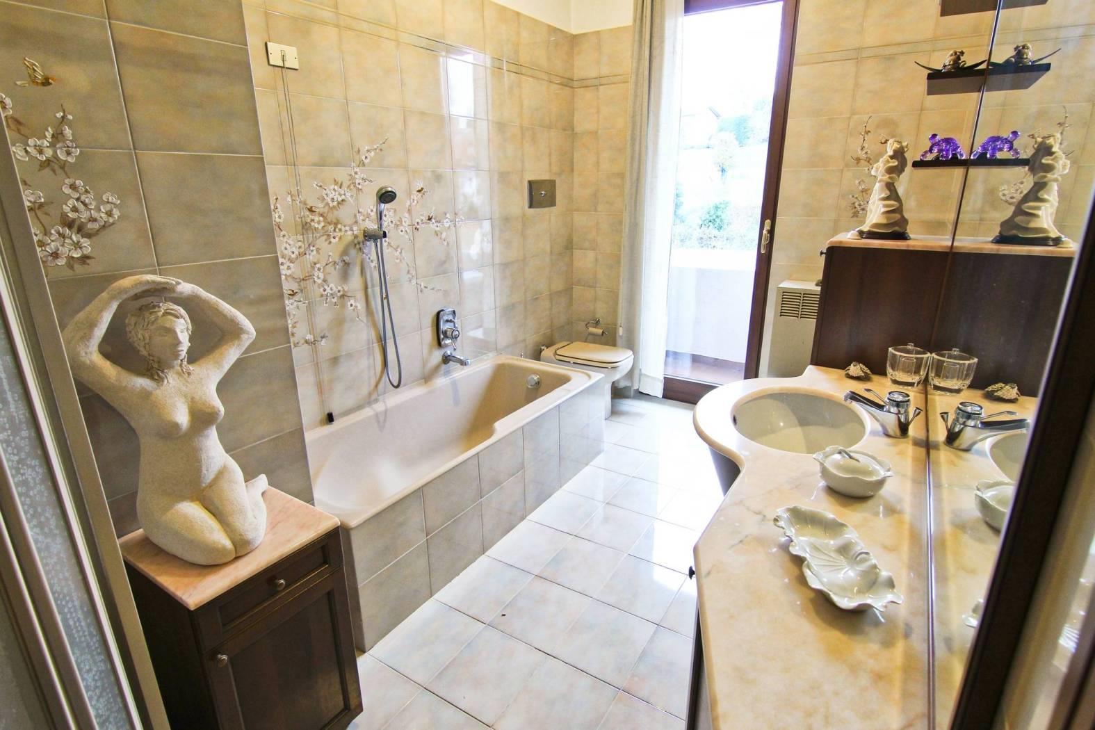 La scala lineare collega il piano superiore composto da tre camere da letto, bagno e due balconi. Il piano cantinato completa le pertinenze della casa con due grandi ambienti, di cui uno destinato a caldaia e lavanderia. Collegato direttamente con la casa è presente il box auto doppio in lunghezza. Il giardino a corpo staccato completa le pertinenze dell’abitazione.