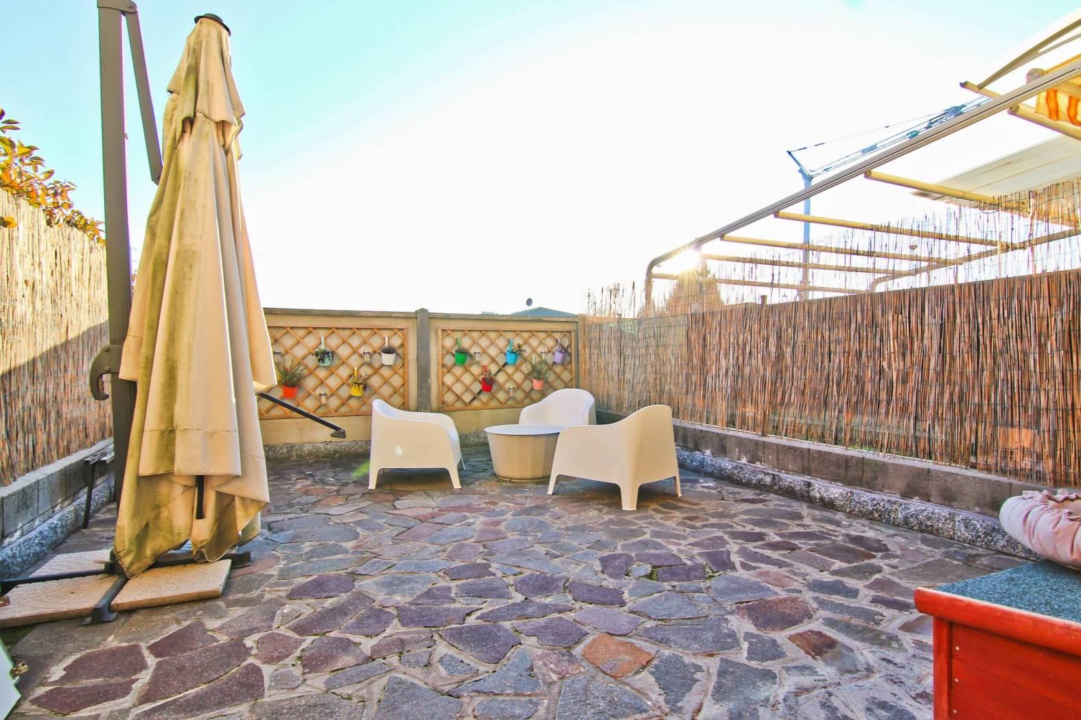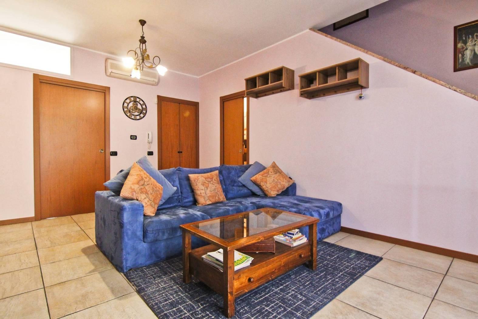 La scala lineare collega il piano superiore, dedicato alla zona notte e composto da due camere da letto, bagno, balcone e terrazzino. Al piano seminterrato, collegata dalla scala interna, è presente la taverna, un grande locale open space adatto ai più svariati usi e dotato di angolo cottura per posizionare la seconda cucina. È presente anche un locale di servizio dedicato alla lavanderia con doccia e sanitari e caldaia. Completa il box auto doppio molto grande.