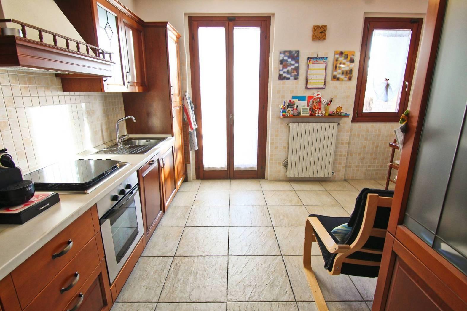 Il giardino d’accoglienza anticipa il portico che ripara la porta d’ingresso. La porta blindata consente l’accesso diretto al soggiorno, comodo negli spazi, dove trova posto il grande divano in direzione della parete audio/video. La cucina è abitabile, molto grande, dove è presente il tavolo da pranzo e la parete attrezzata della cucina; la porta finestra consente l’accesso all’aria esterna che, per comodità, è stata piastrellata, un’oasi di relax all’aria aperta dove godersi le migliori stagioni.