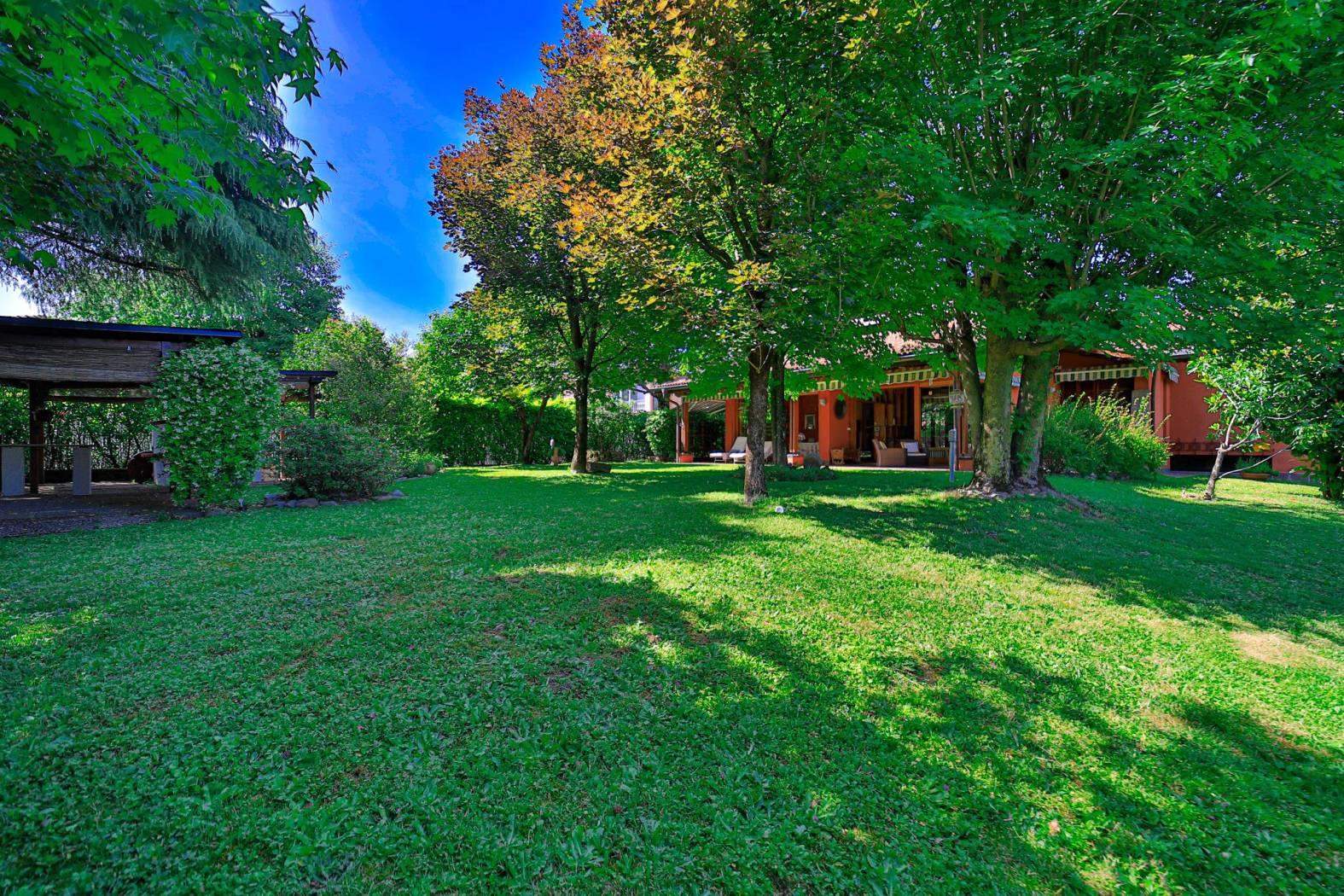 In una delle posizioni più esclusive e riservate di Merate, a pochi passi dalle sue vie pedonali storiche, dai negozi, bar e ristoranti del centro, nel comune tra i più vivaci e storicamente significativi della Brianza lecchese, proponiamo in vendita una villa indipendente di rara eleganza e unicità, immersa in un rigoglioso giardino di 1.400 mq, perfettamente piantumato e dotato di impianto di irrigazione automatica.