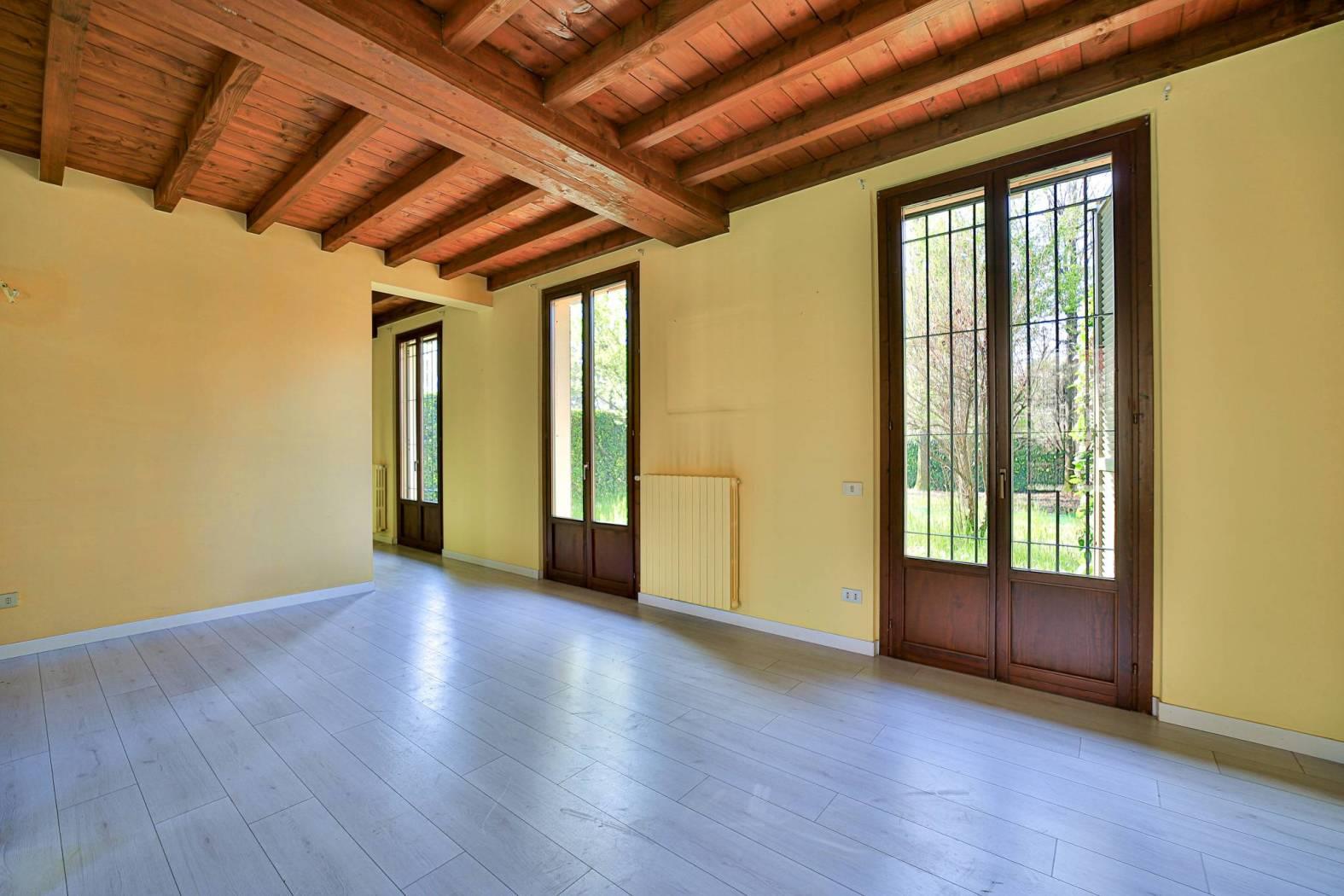 Pavimentazione di tutta casa in piastrelle di Cotto d’Este attualmente ricoperto da pavimentazione in laminato in appoggio.