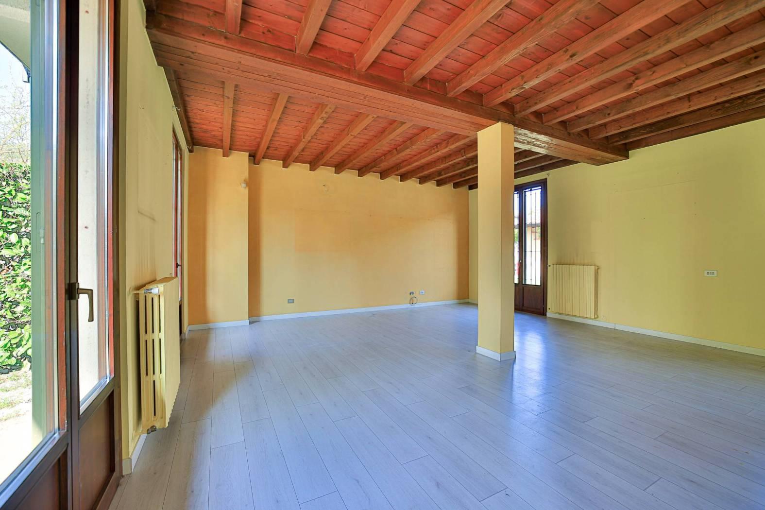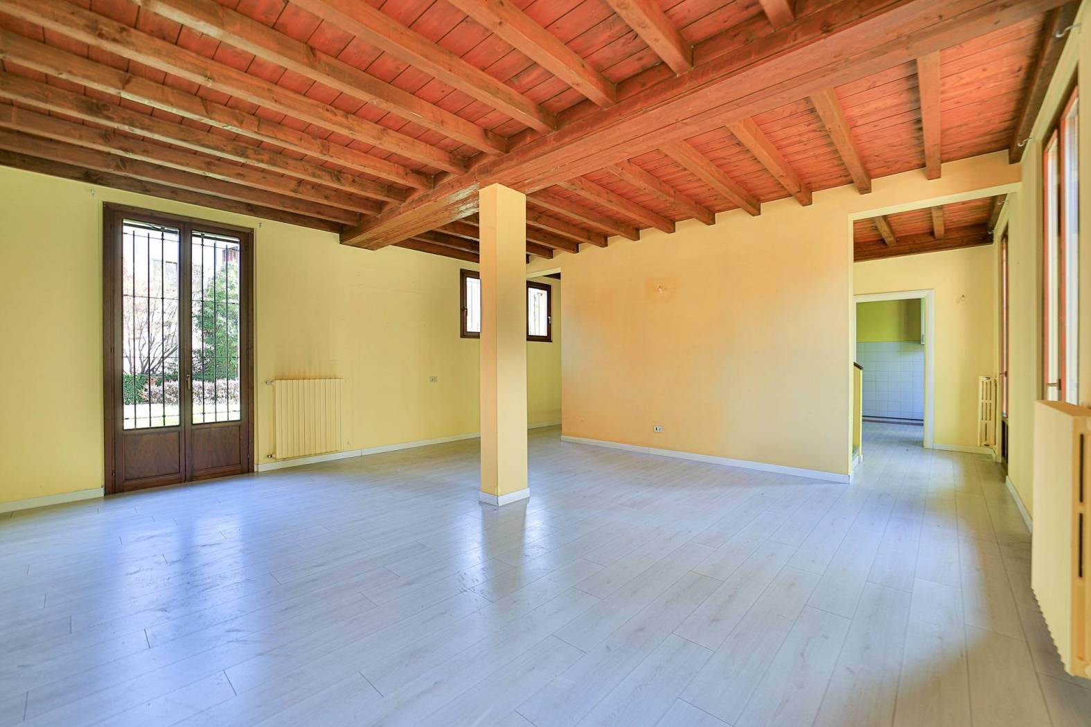Pavimentazione di tutta casa in piastrelle di Cotto d’Este attualmente ricoperto da pavimentazione in laminato in appoggio.